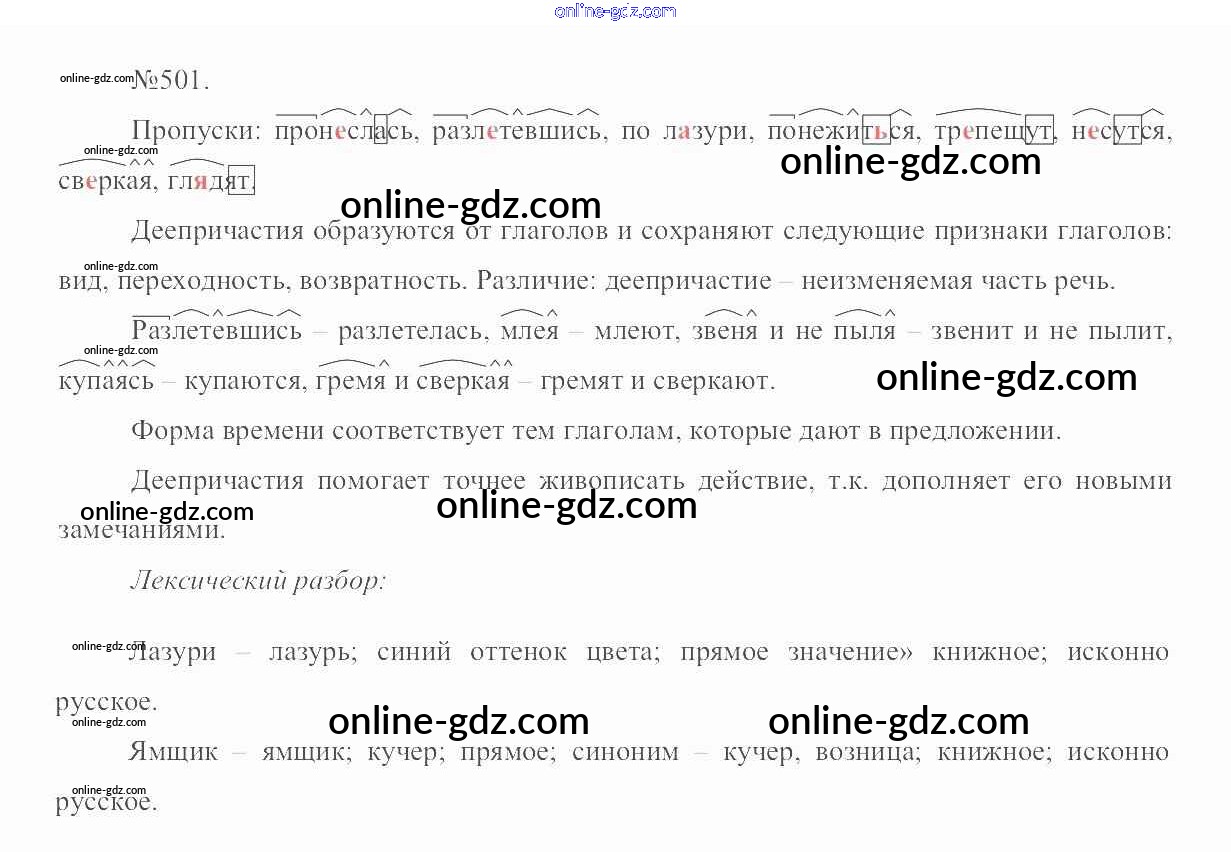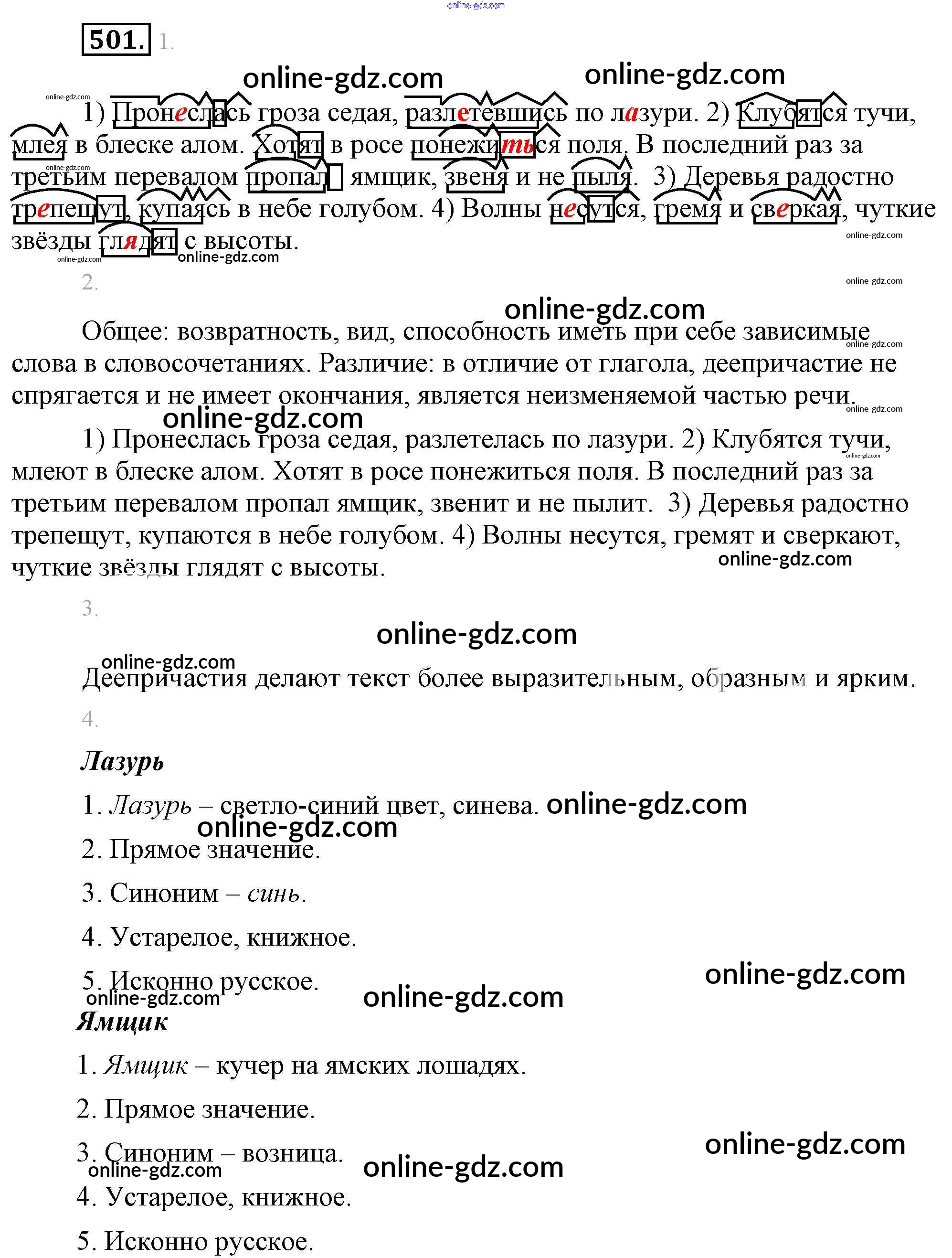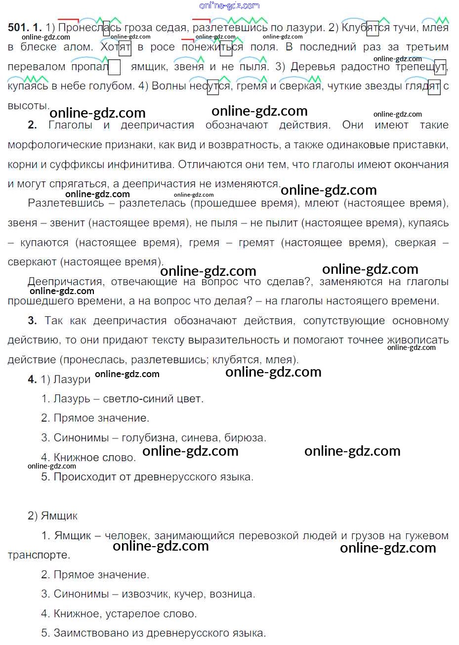 Готовые домашние задания по Русскому языку за 6 класс Учебник Разумовская, Львова Вертикаль 2016 - Упражнения 501