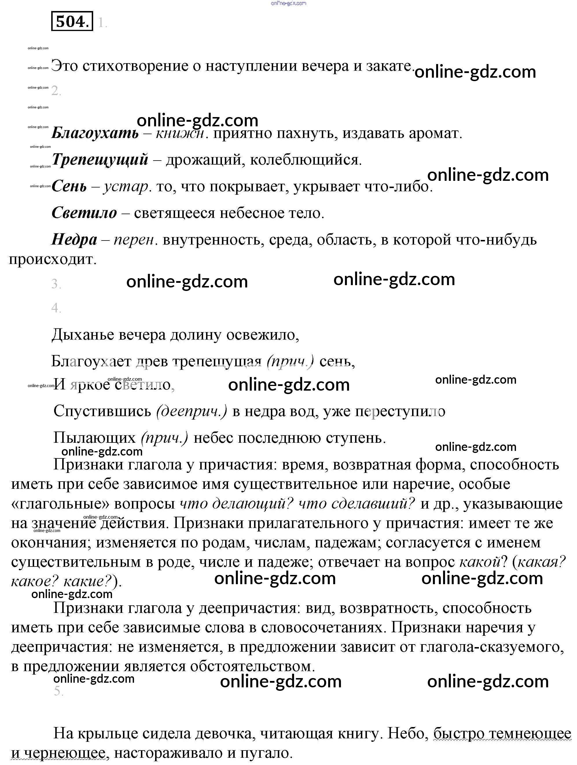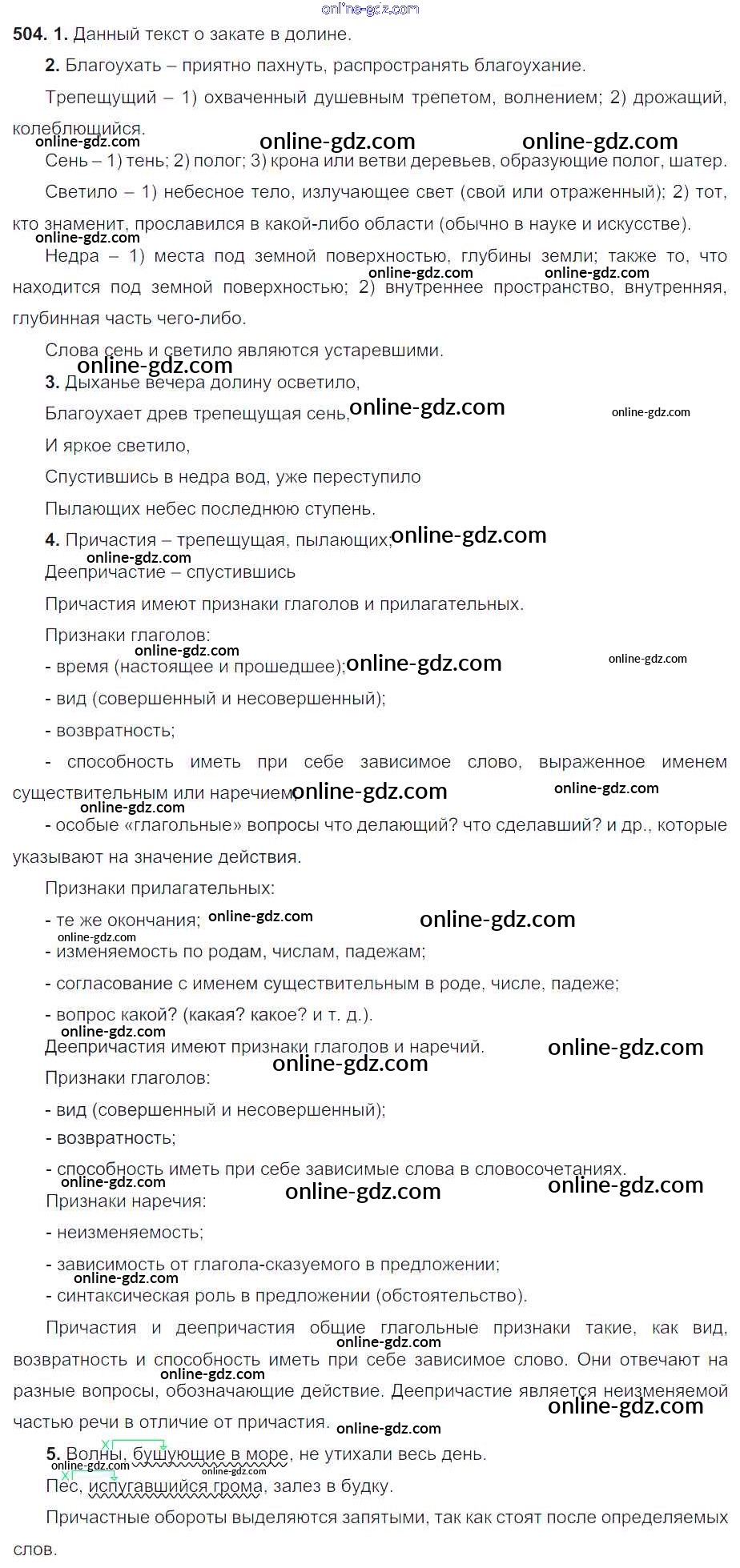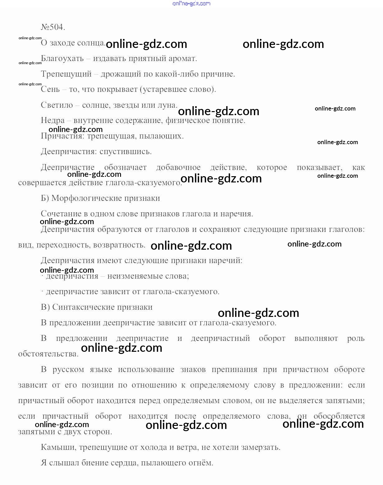 Готовые домашние задания по Русскому языку за 6 класс Учебник Разумовская, Львова Вертикаль 2016 - Упражнения 504