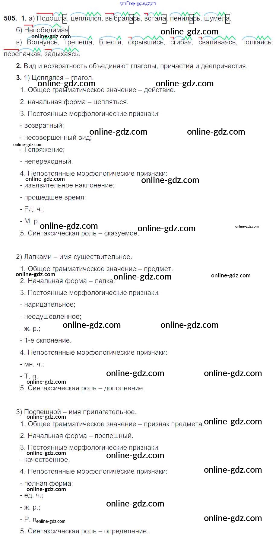Готовые домашние задания по Русскому языку за 6 класс Учебник Разумовская, Львова Вертикаль 2016 - Упражнения 505