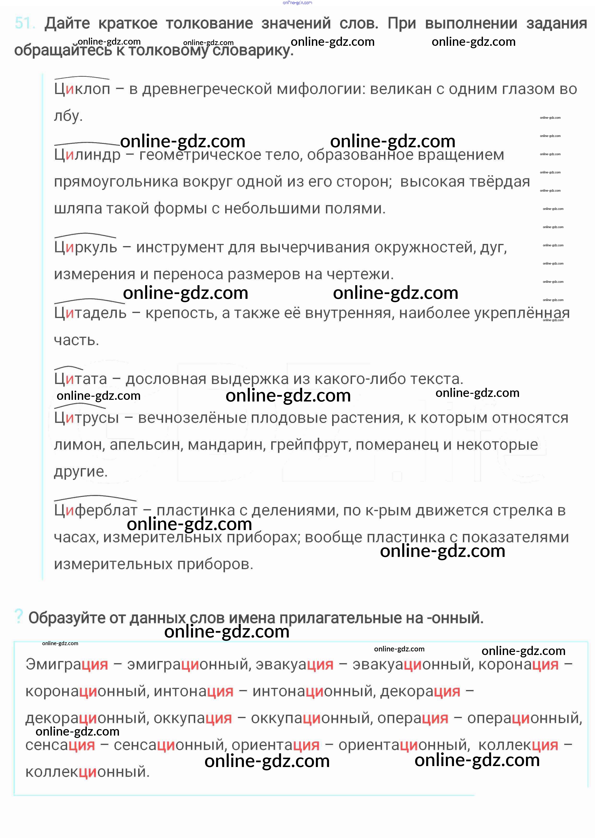 Готовые домашние задания по Русскому языку за 6 класс Учебник Разумовская, Львова Вертикаль 2016 - Упражнения 51
