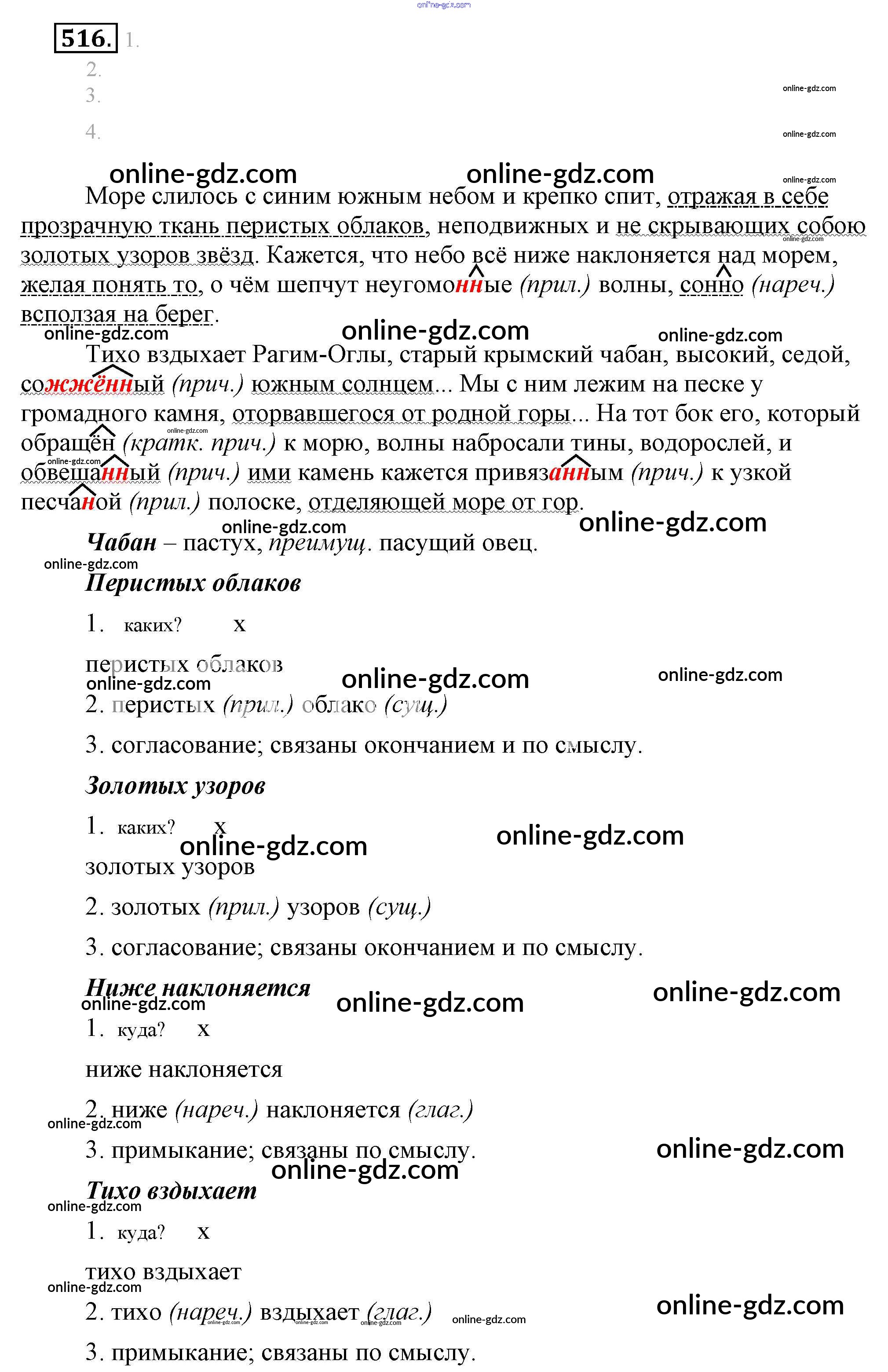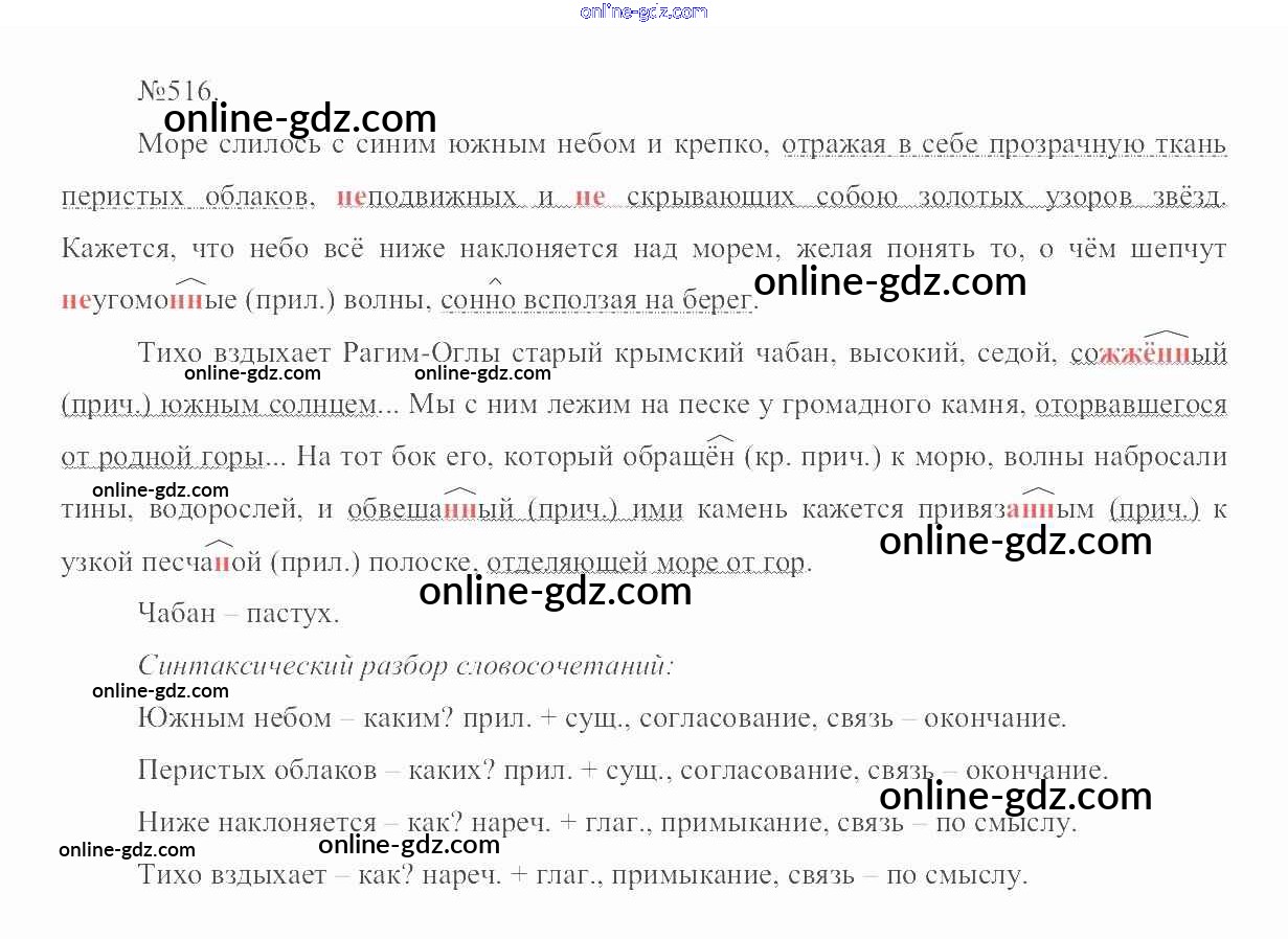 Готовые домашние задания по Русскому языку за 6 класс Учебник Разумовская, Львова Вертикаль 2016 - Упражнения 516