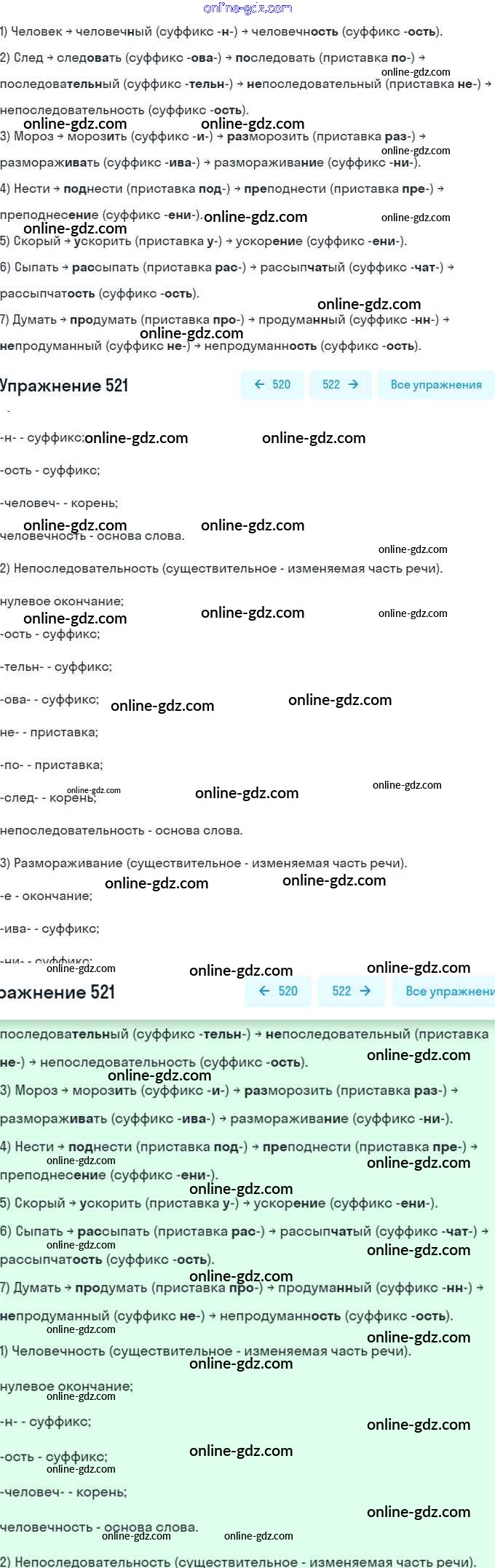 Готовые домашние задания по Русскому языку за 6 класс Учебник Разумовская, Львова Вертикаль 2016 - Упражнения 521