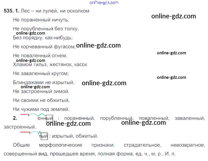 Готовые домашние задания по Русскому языку за 6 класс Учебник Разумовская, Львова Вертикаль 2016 - Упражнения 535