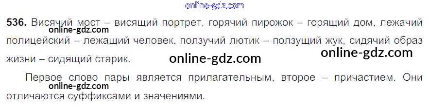Готовые домашние задания по Русскому языку за 6 класс Учебник Разумовская, Львова Вертикаль 2016 - Упражнения 536