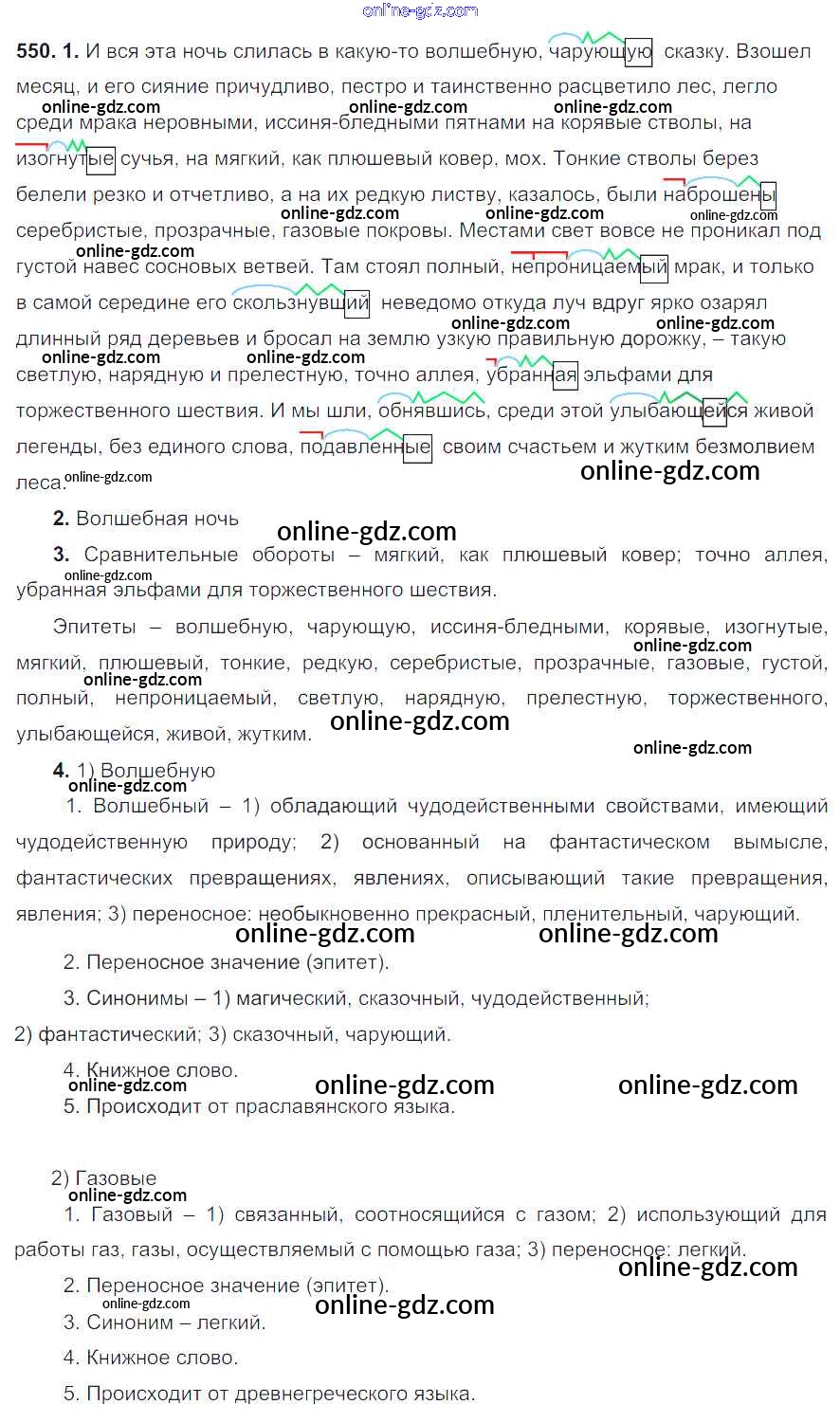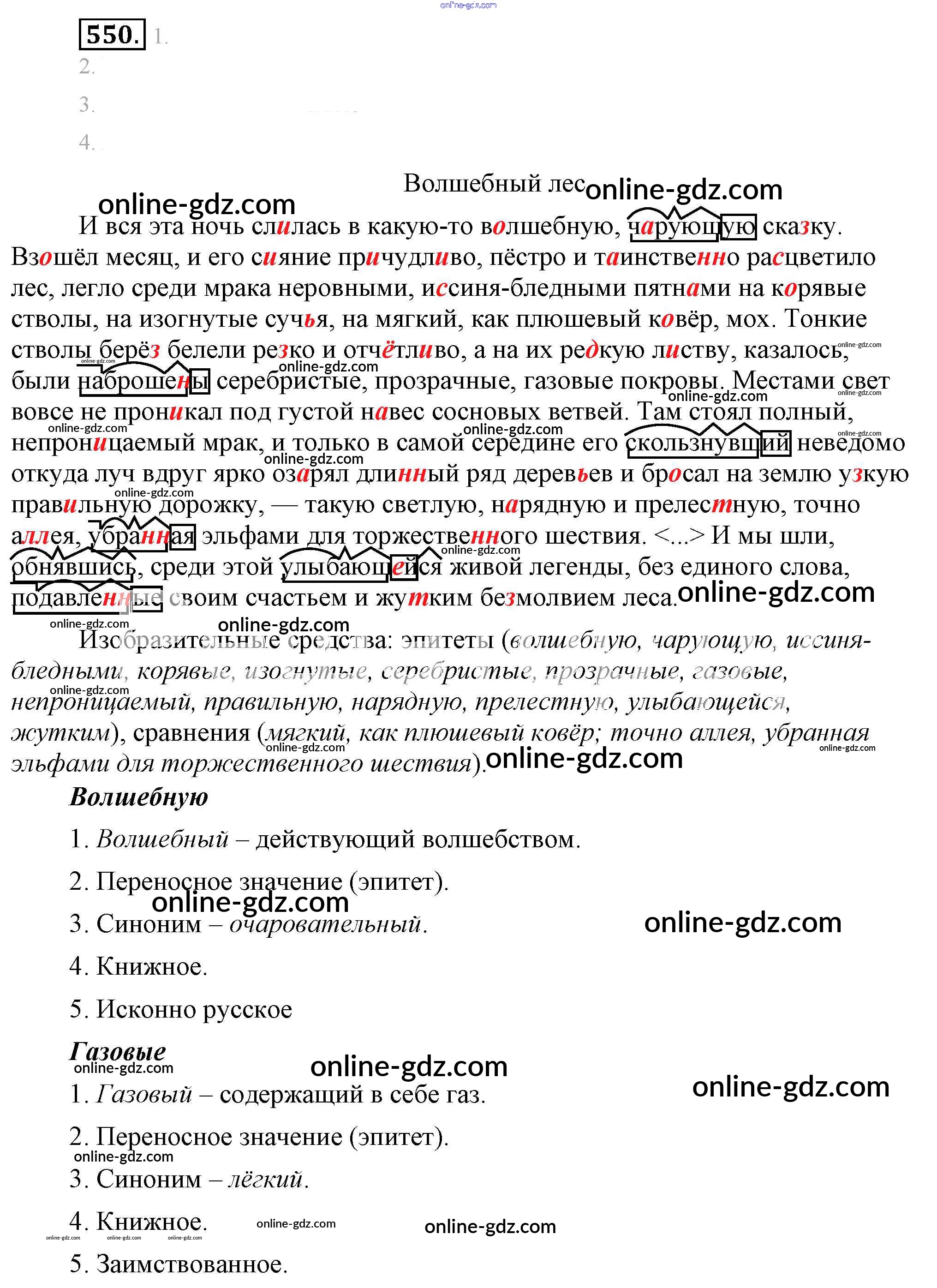 Готовые домашние задания по Русскому языку за 6 класс Учебник Разумовская, Львова Вертикаль 2016 - Упражнения 550