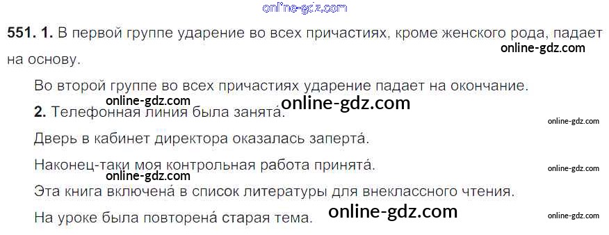Готовые домашние задания по Русскому языку за 6 класс Учебник Разумовская, Львова Вертикаль 2016 - Упражнения 551