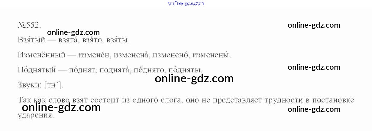 Готовые домашние задания по Русскому языку за 6 класс Учебник Разумовская, Львова Вертикаль 2016 - Упражнения 552