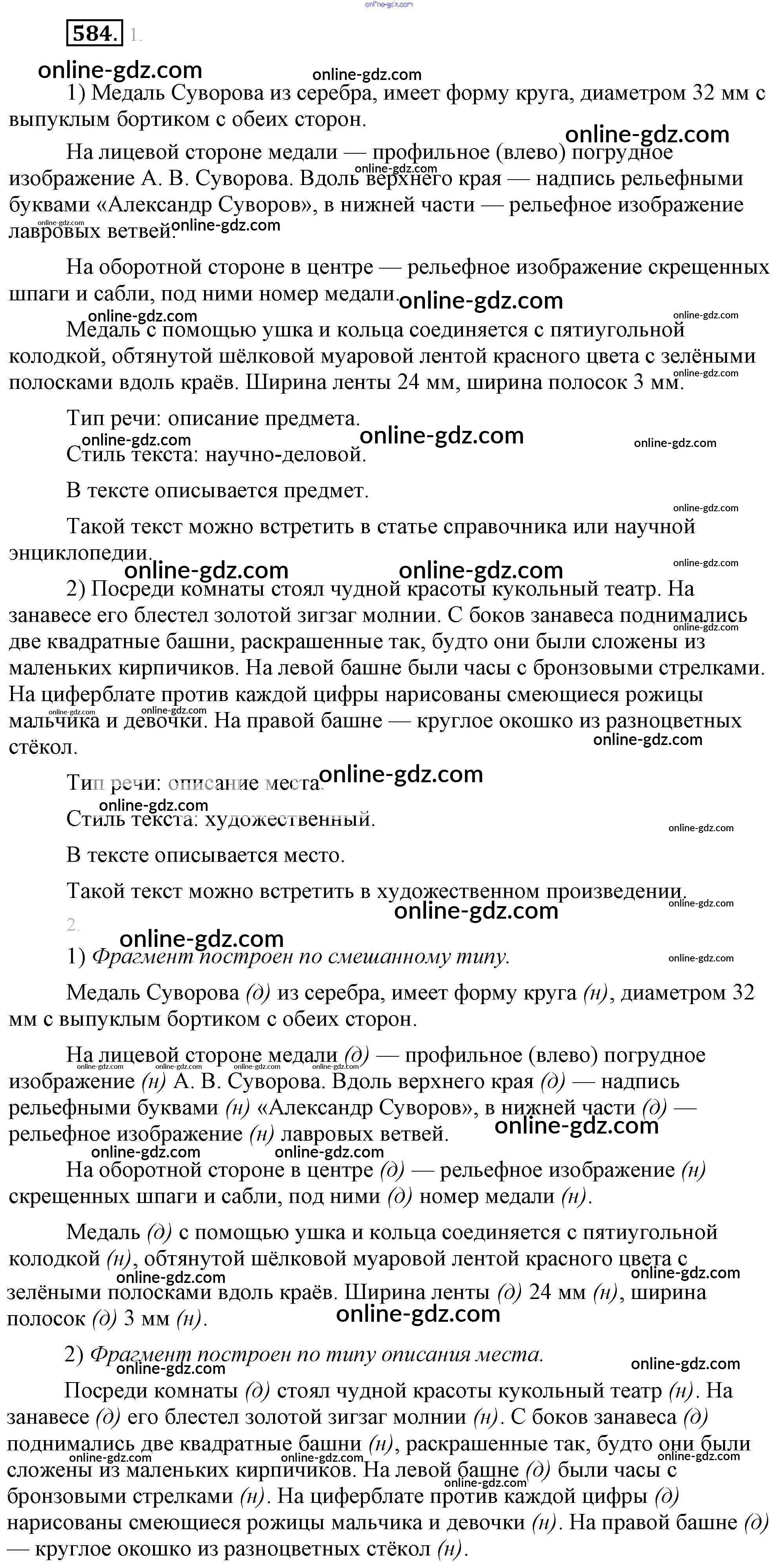 Готовые домашние задания по Русскому языку за 6 класс Учебник Разумовская, Львова Вертикаль 2016 - Упражнения 584