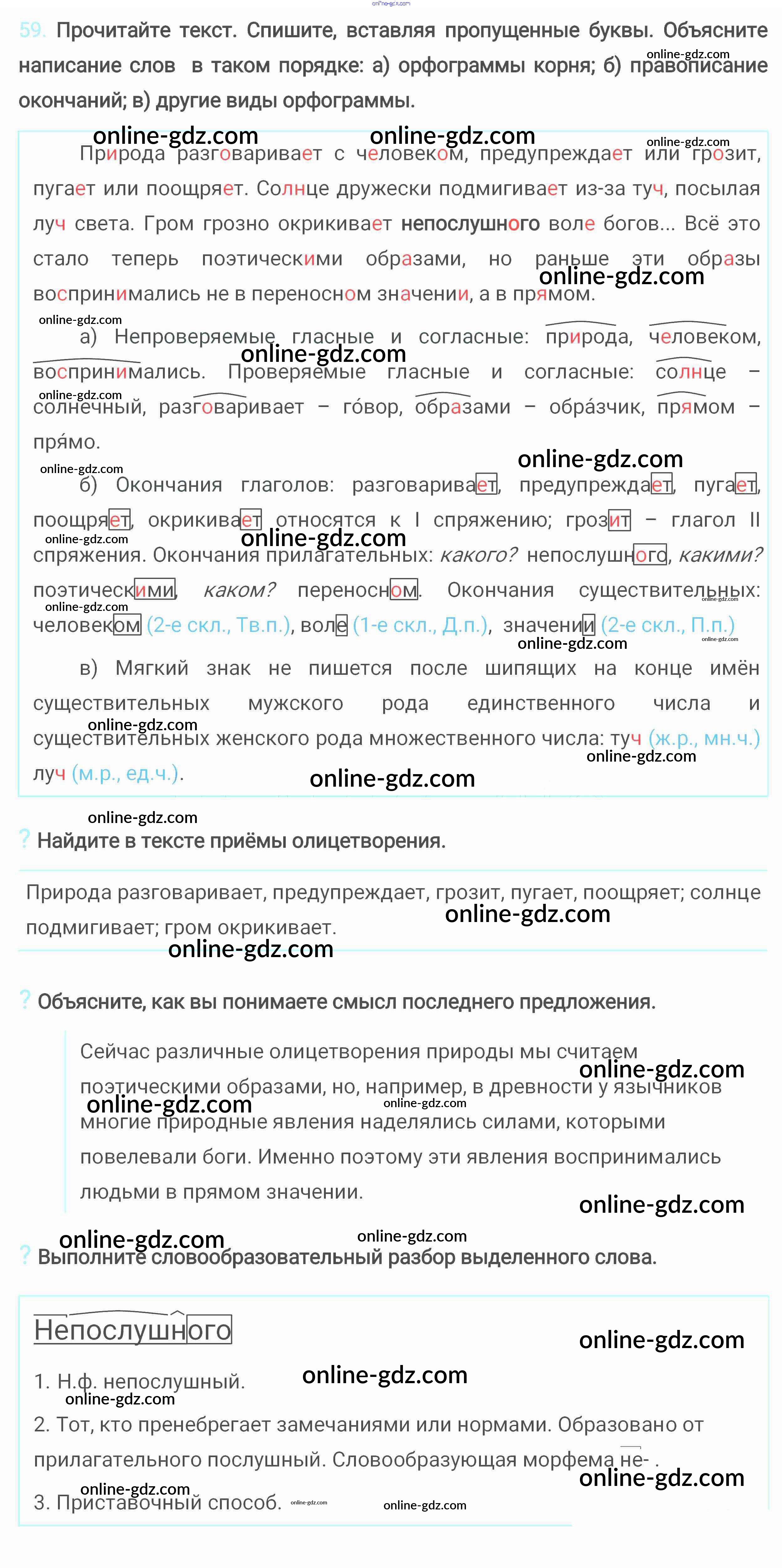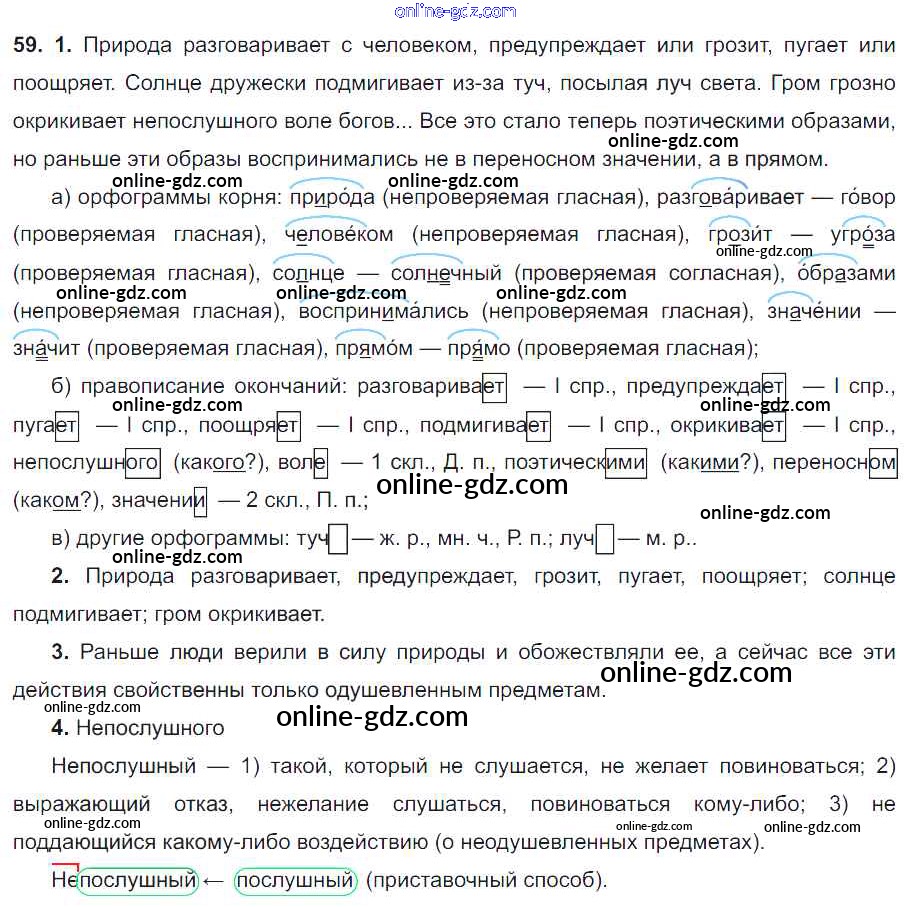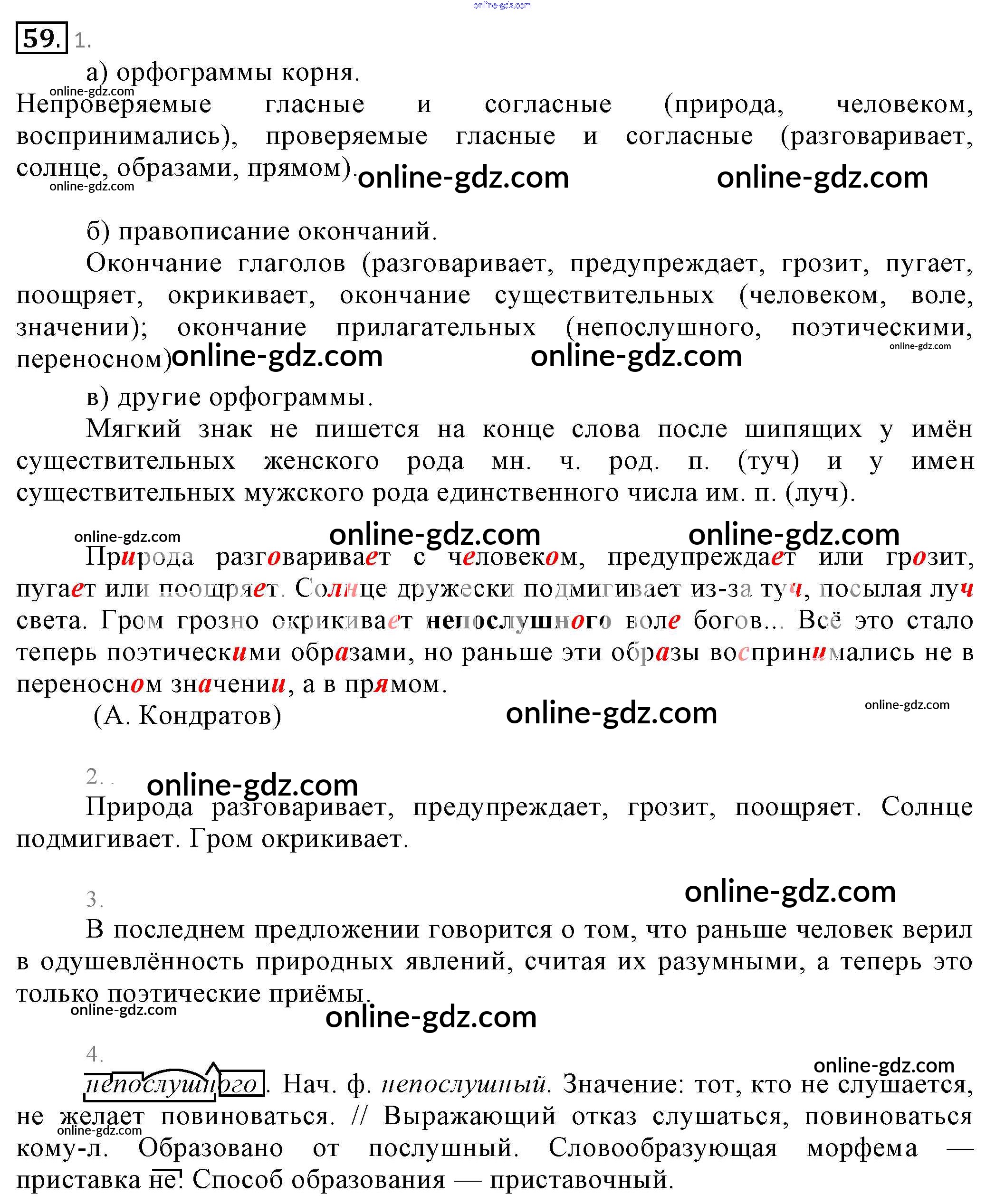 Готовые домашние задания по Русскому языку за 6 класс Учебник Разумовская, Львова Вертикаль 2016 - Упражнения 59
