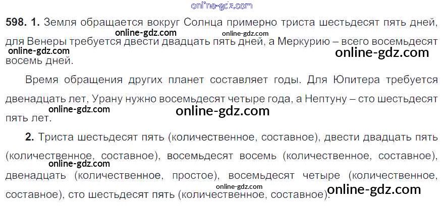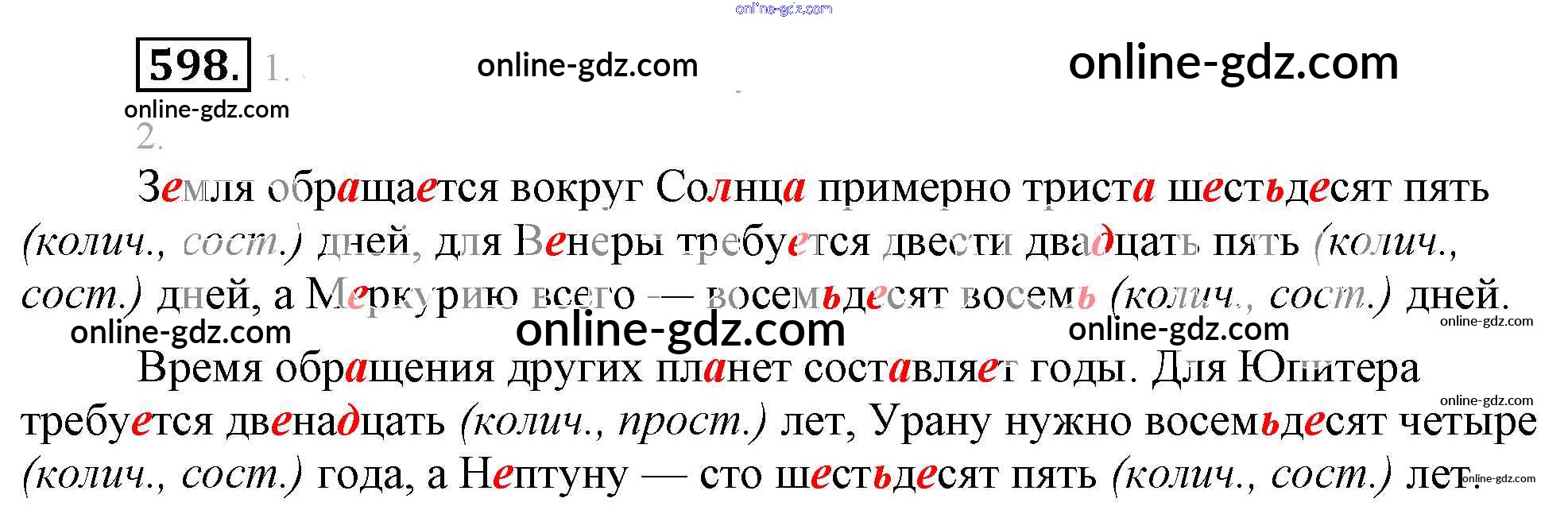 Готовые домашние задания по Русскому языку за 6 класс Учебник Разумовская, Львова Вертикаль 2016 - Упражнения 598