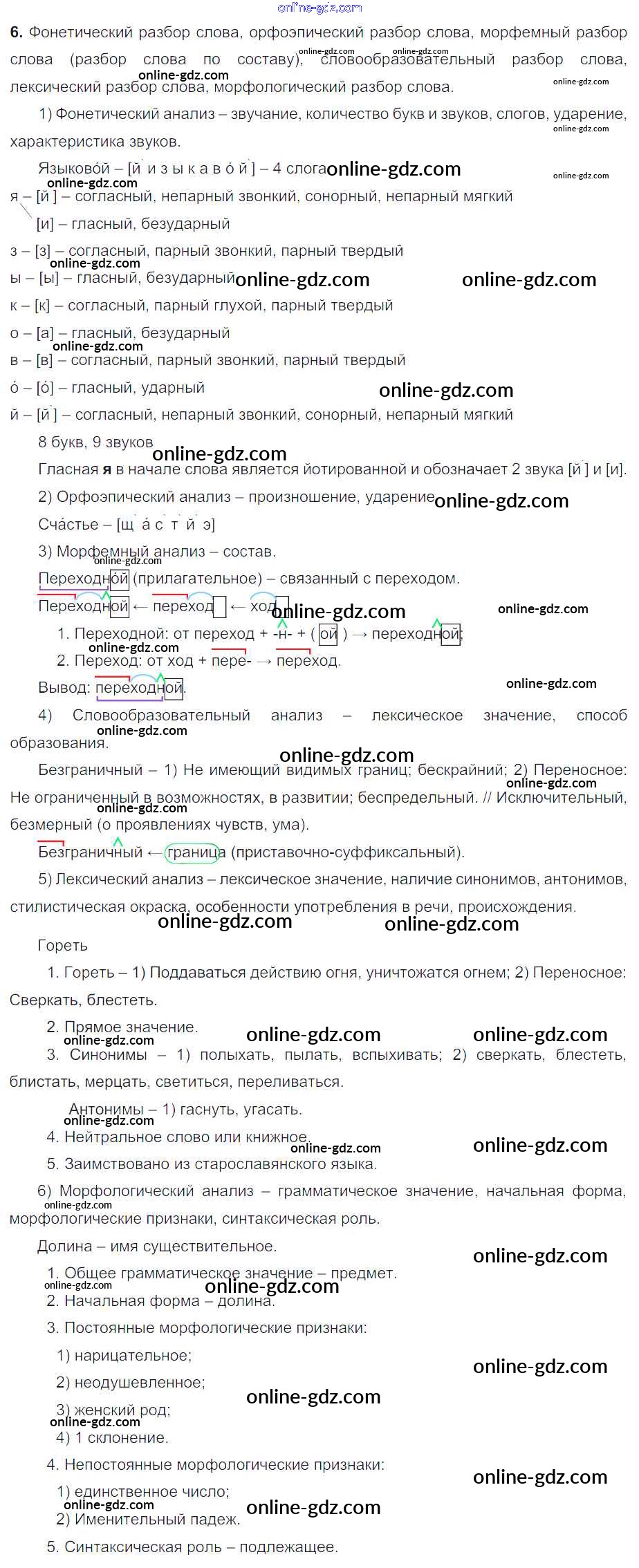 Готовые домашние задания по Русскому языку за 6 класс Учебник Разумовская, Львова Вертикаль 2016 - Упражнения 6