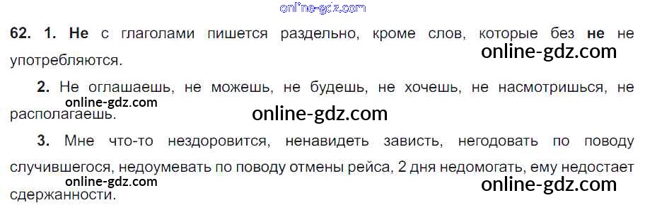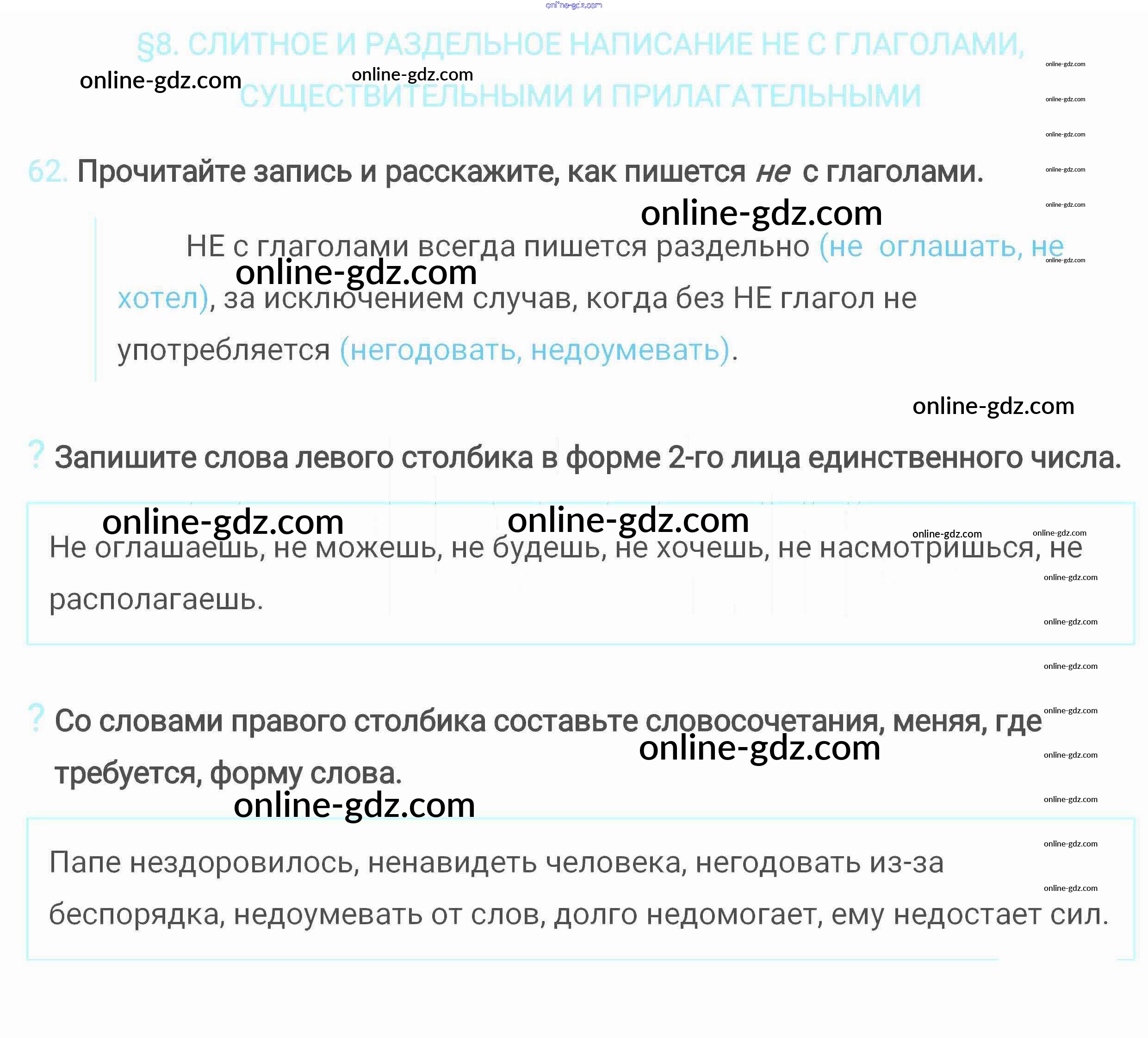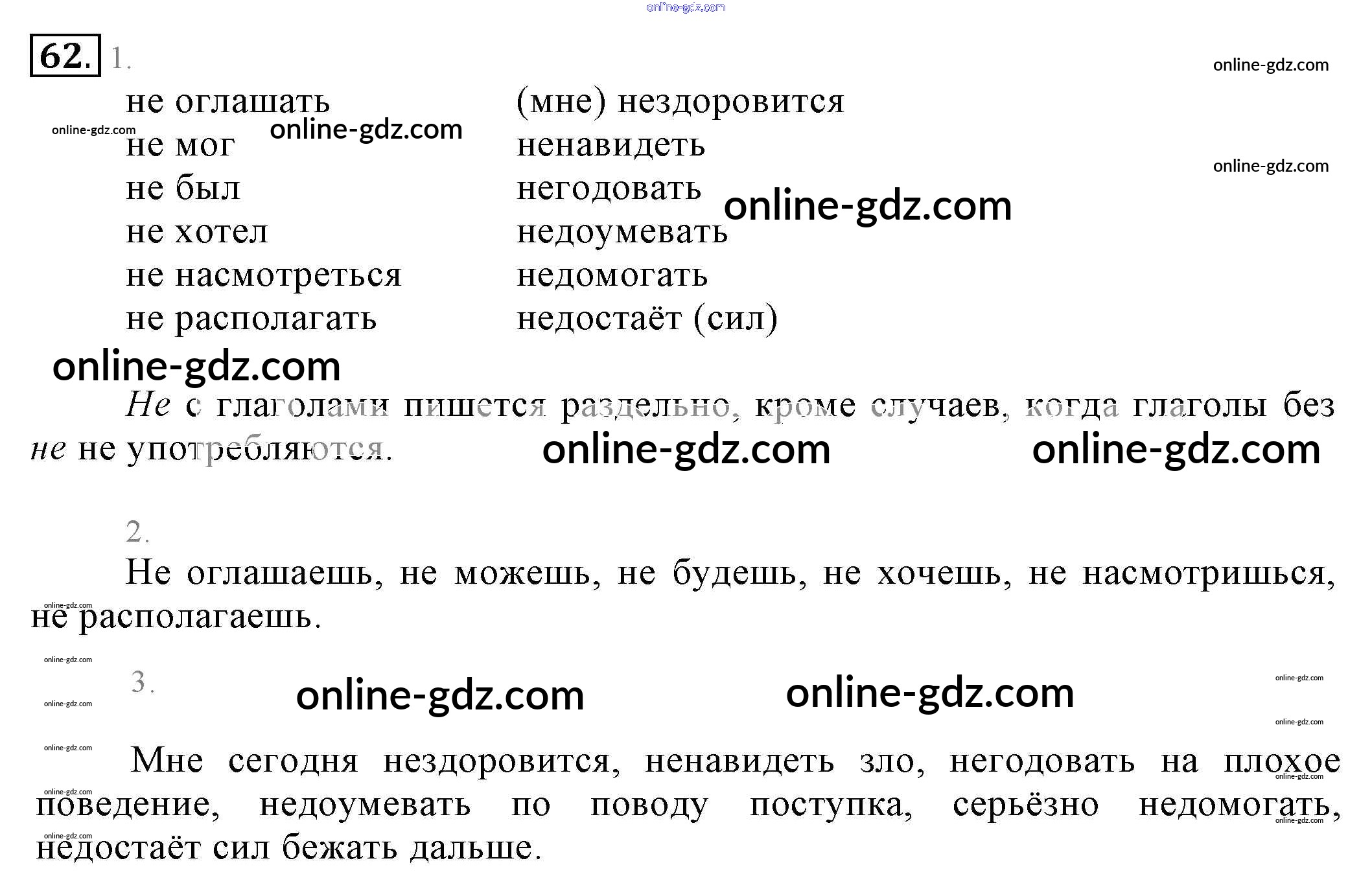 Готовые домашние задания по Русскому языку за 6 класс Учебник Разумовская, Львова Вертикаль 2016 - Упражнения 62