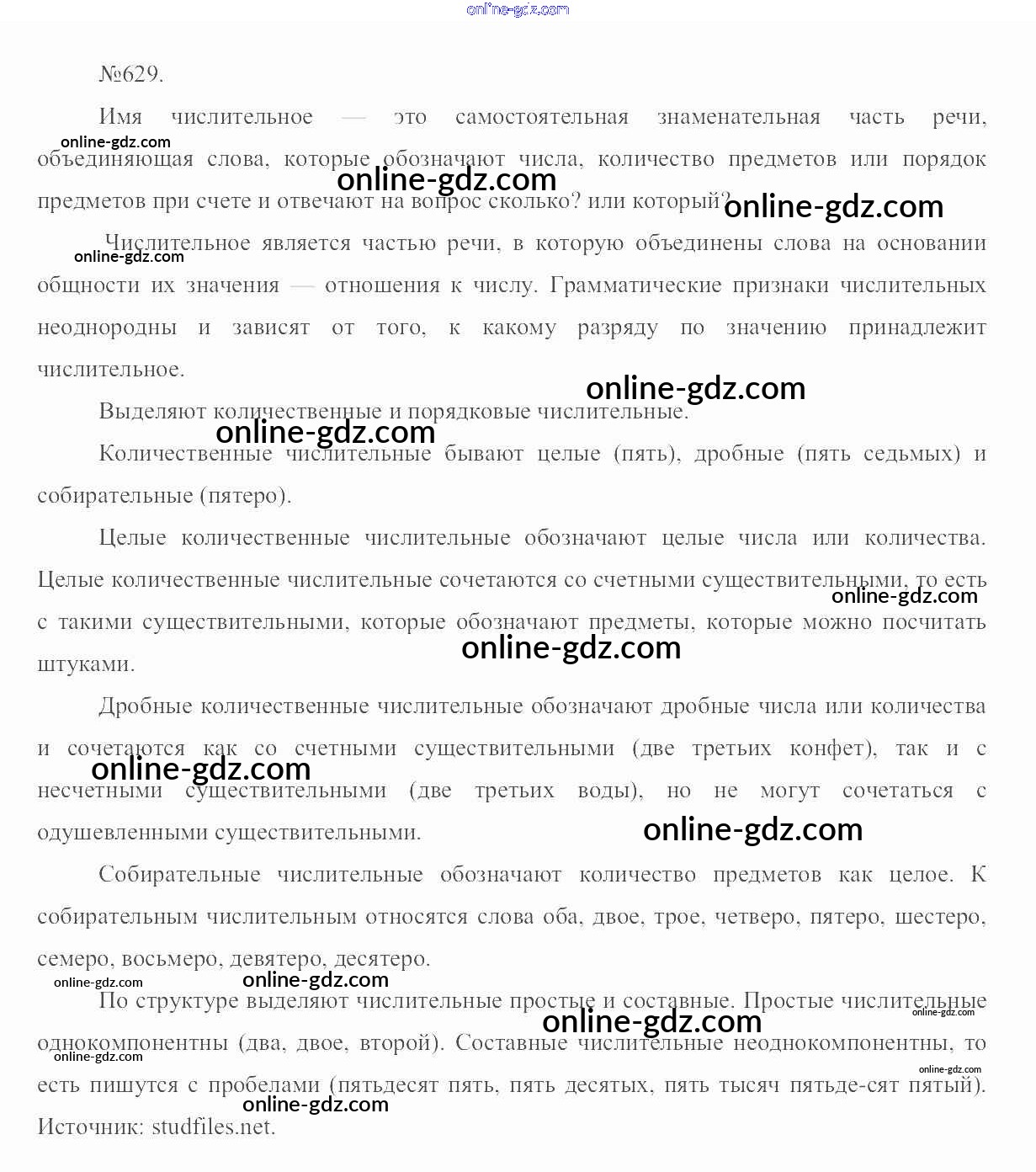 Готовые домашние задания по Русскому языку за 6 класс Учебник Разумовская, Львова Вертикаль 2016 - Упражнения 629
