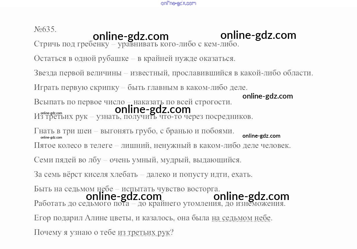 Готовые домашние задания по Русскому языку за 6 класс Учебник Разумовская, Львова Вертикаль 2016 - Упражнения 635
