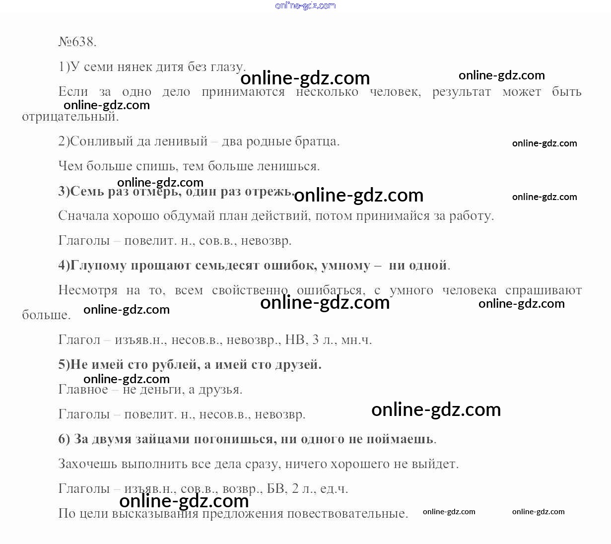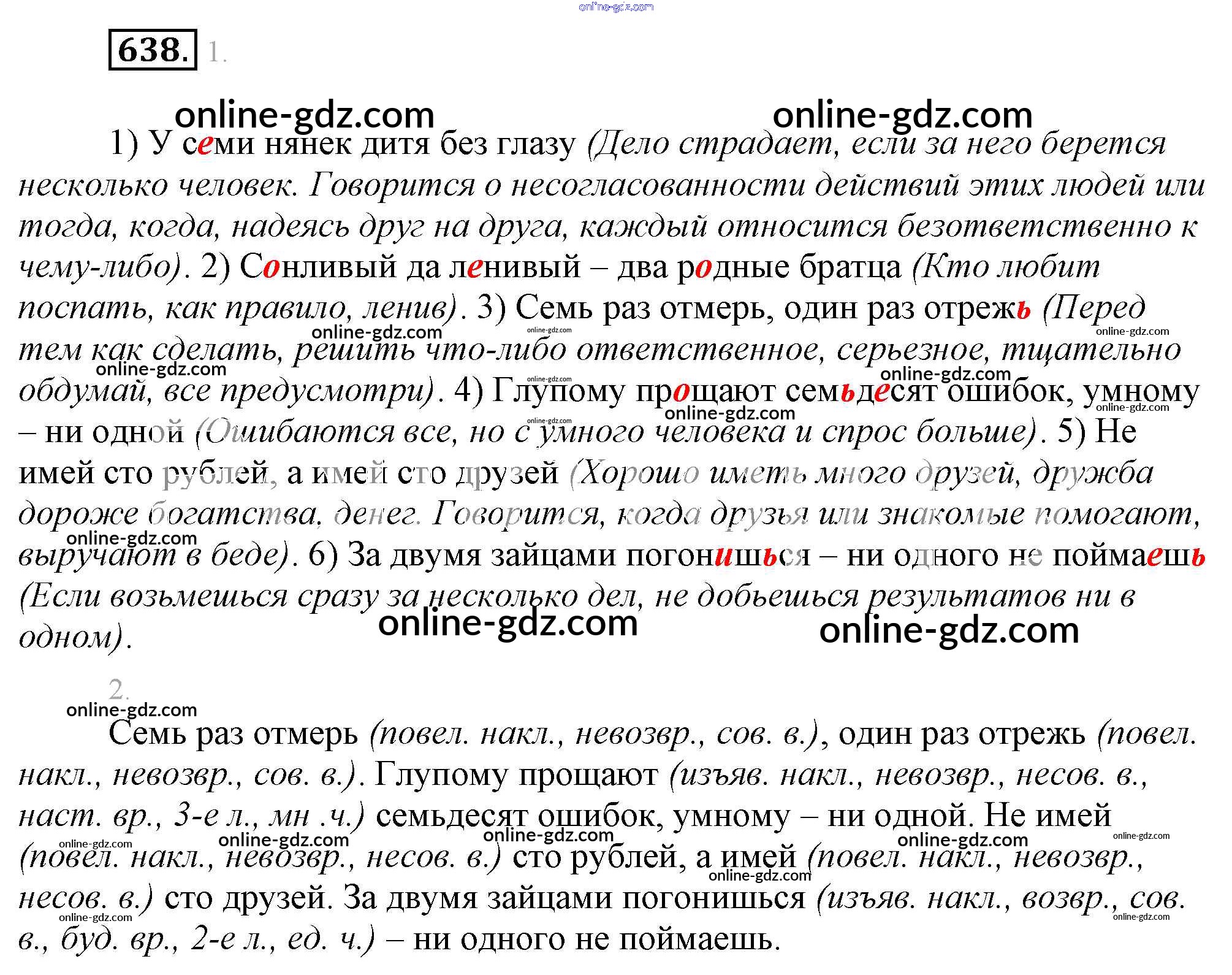 Готовые домашние задания по Русскому языку за 6 класс Учебник Разумовская, Львова Вертикаль 2016 - Упражнения 638
