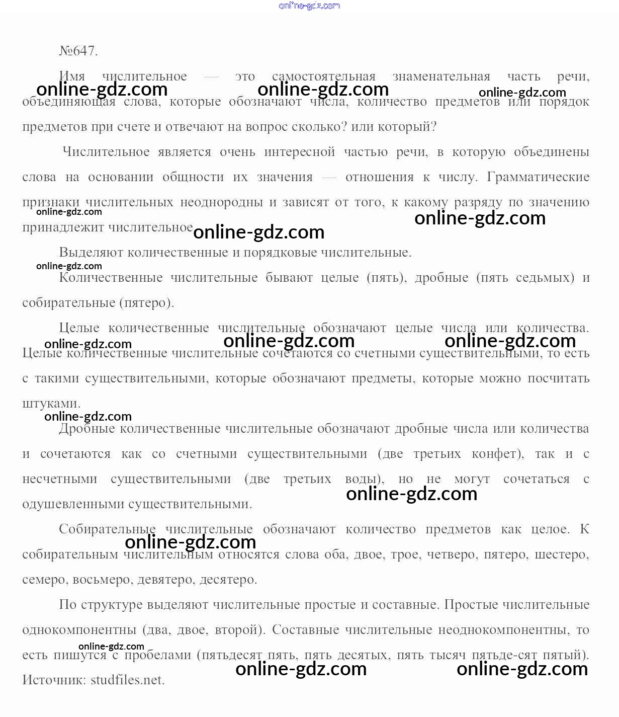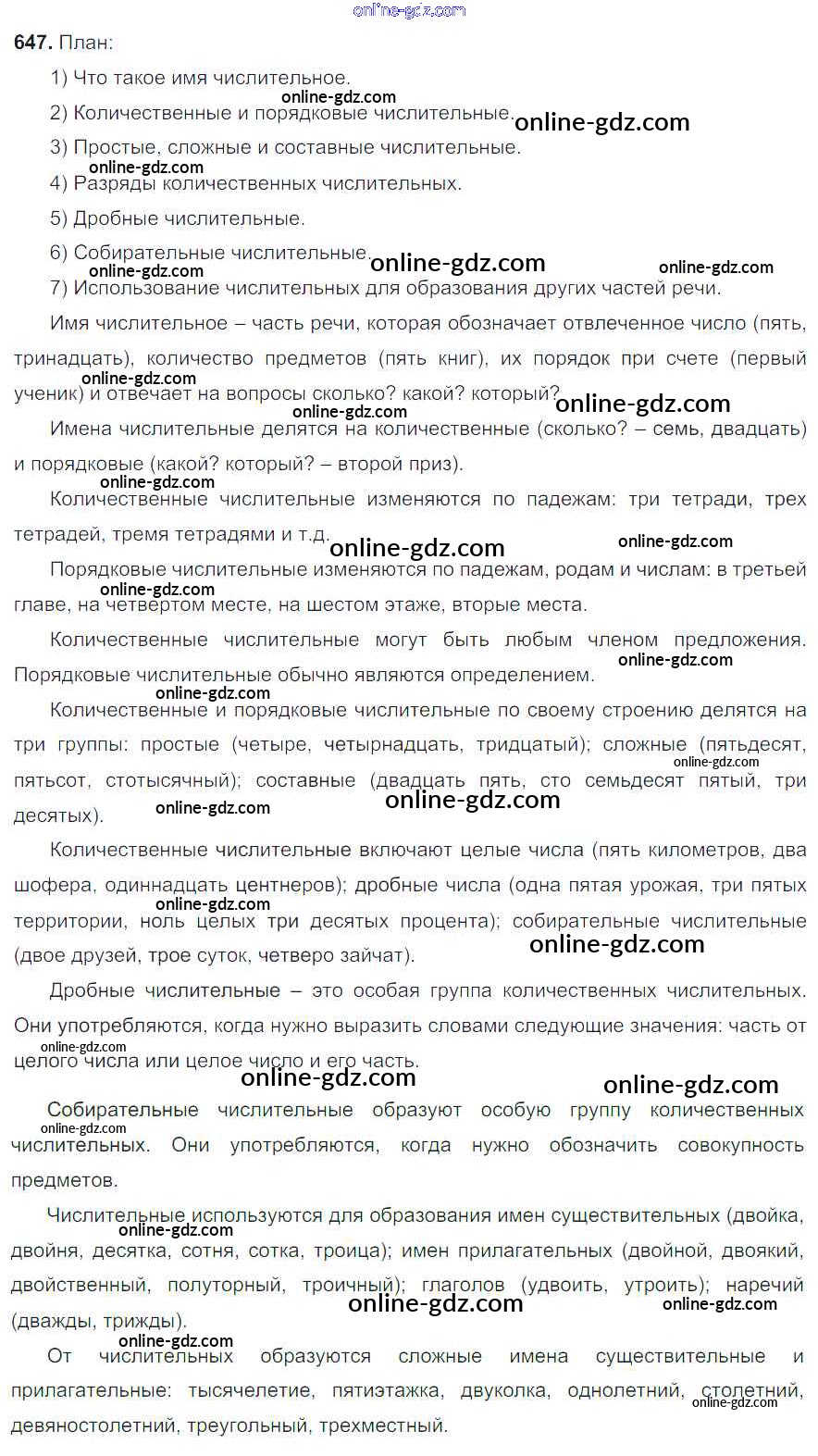 Готовые домашние задания по Русскому языку за 6 класс Учебник Разумовская, Львова Вертикаль 2016 - Упражнения 647
