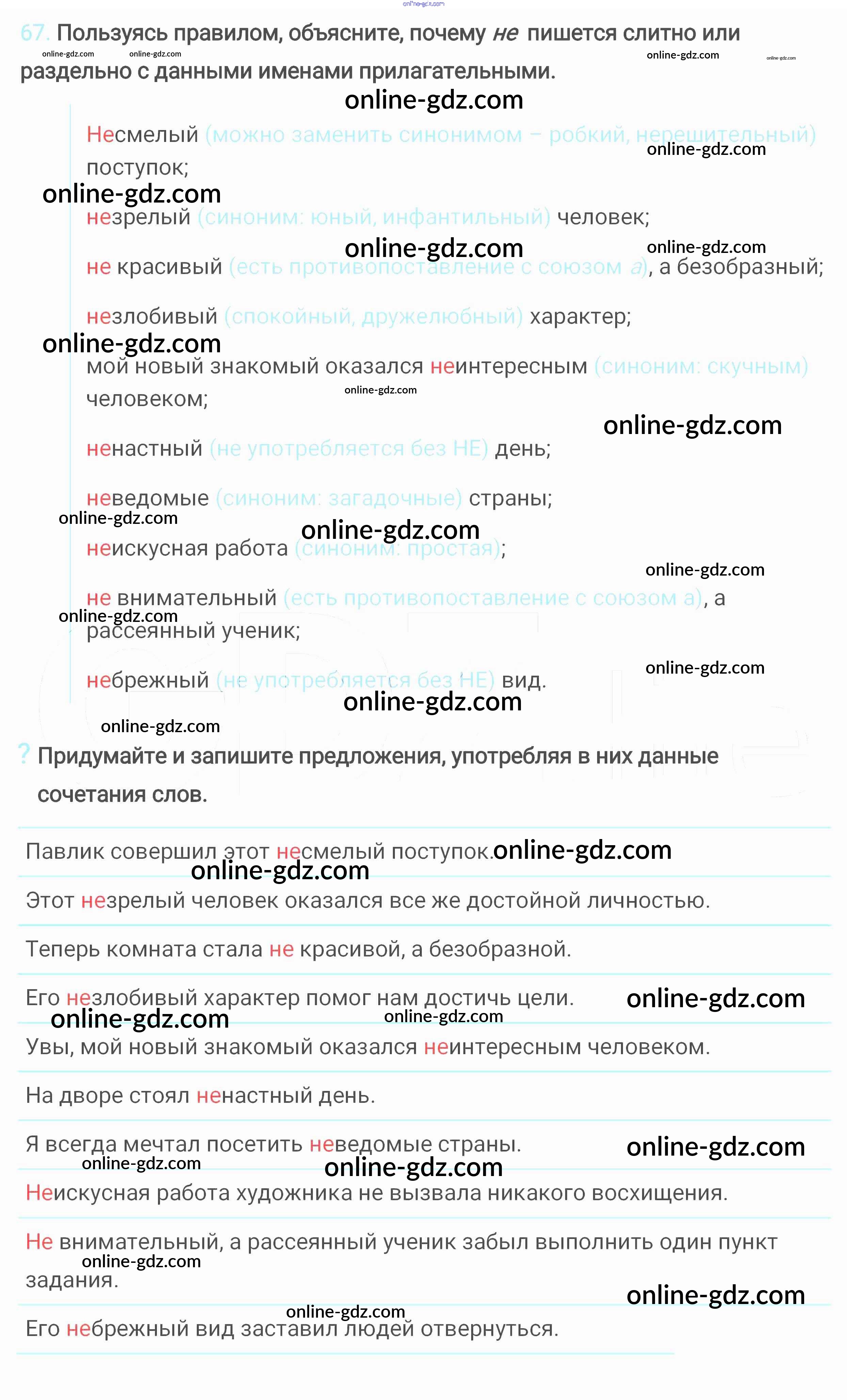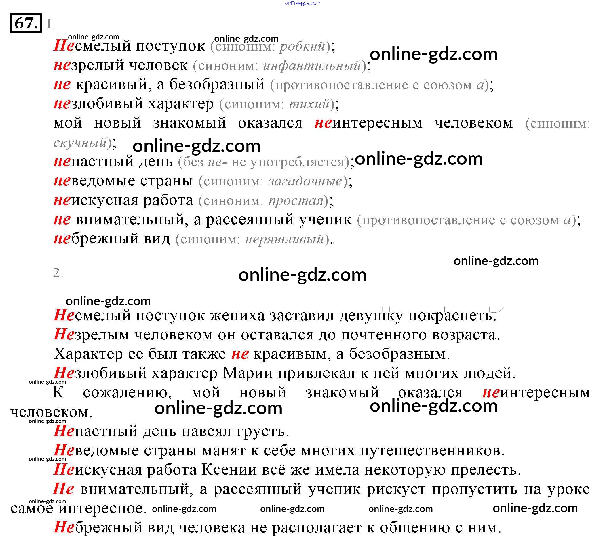 Готовые домашние задания по Русскому языку за 6 класс Учебник Разумовская, Львова Вертикаль 2016 - Упражнения 67