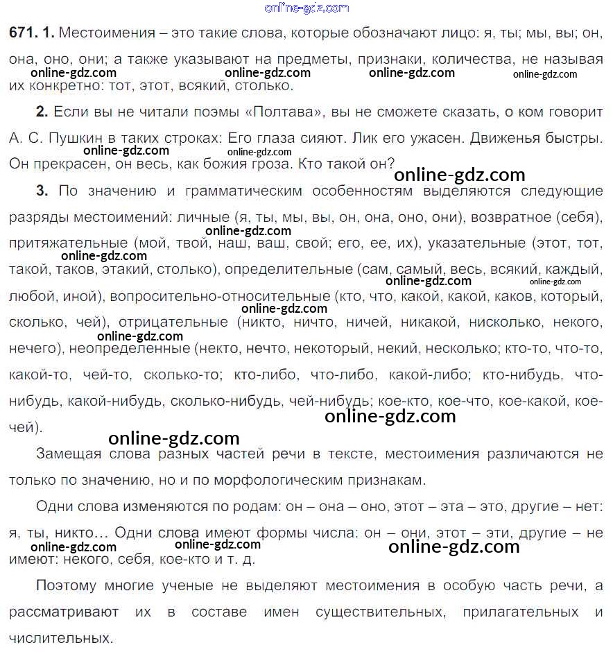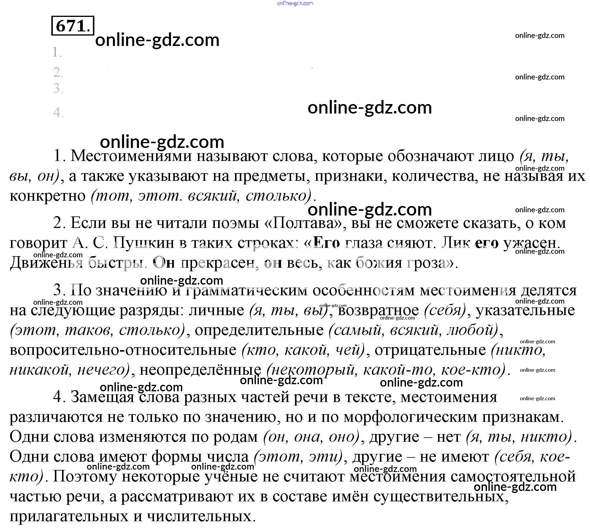 Готовые домашние задания по Русскому языку за 6 класс Учебник Разумовская, Львова Вертикаль 2016 - Упражнения 671