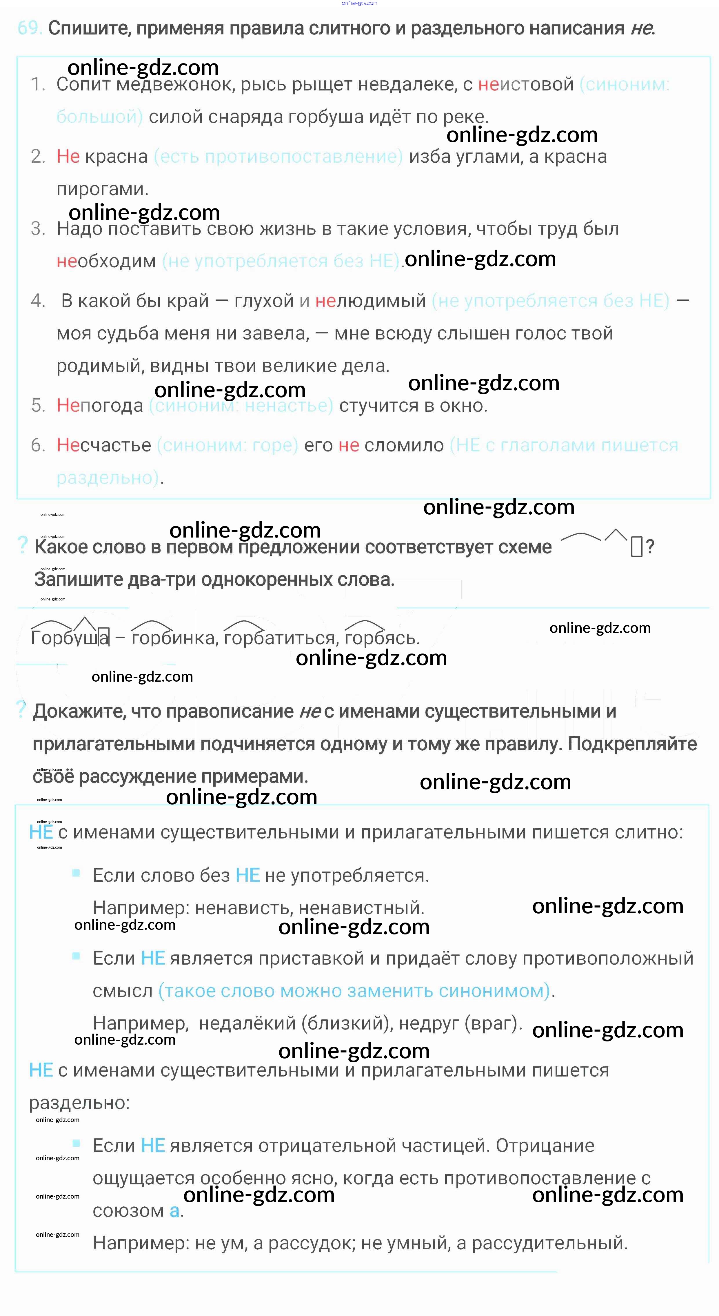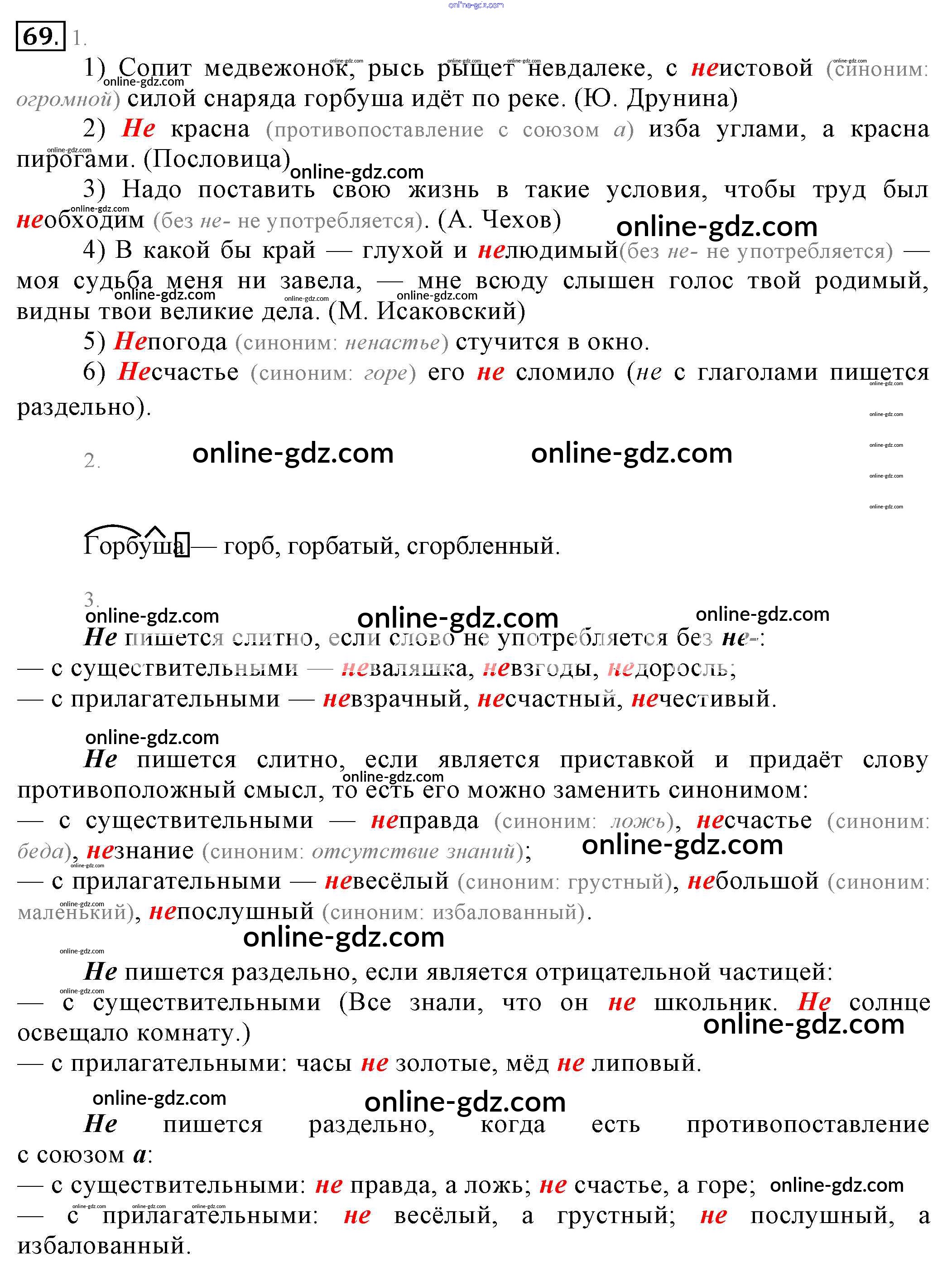 Готовые домашние задания по Русскому языку за 6 класс Учебник Разумовская, Львова Вертикаль 2016 - Упражнения 69