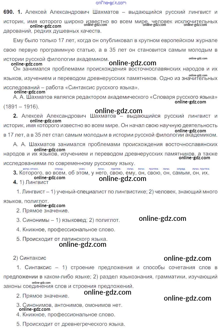 Готовые домашние задания по Русскому языку за 6 класс Учебник Разумовская, Львова Вертикаль 2016 - Упражнения 690
