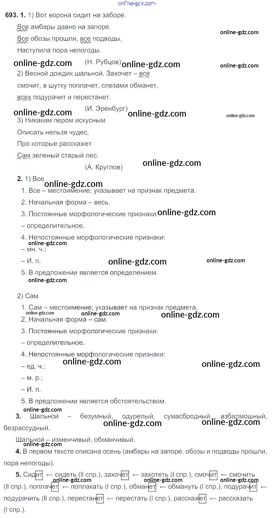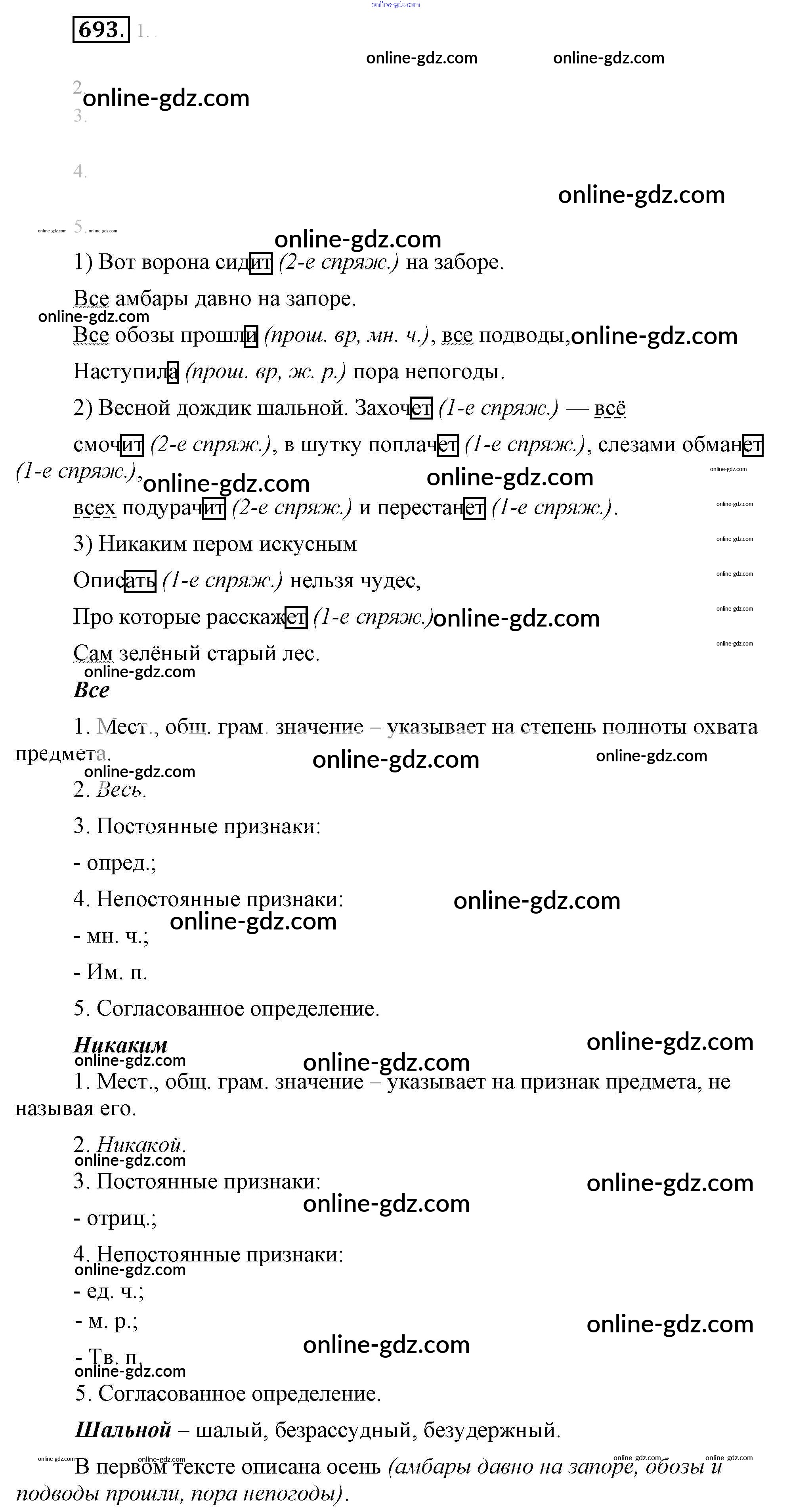 Готовые домашние задания по Русскому языку за 6 класс Учебник Разумовская, Львова Вертикаль 2016 - Упражнения 693