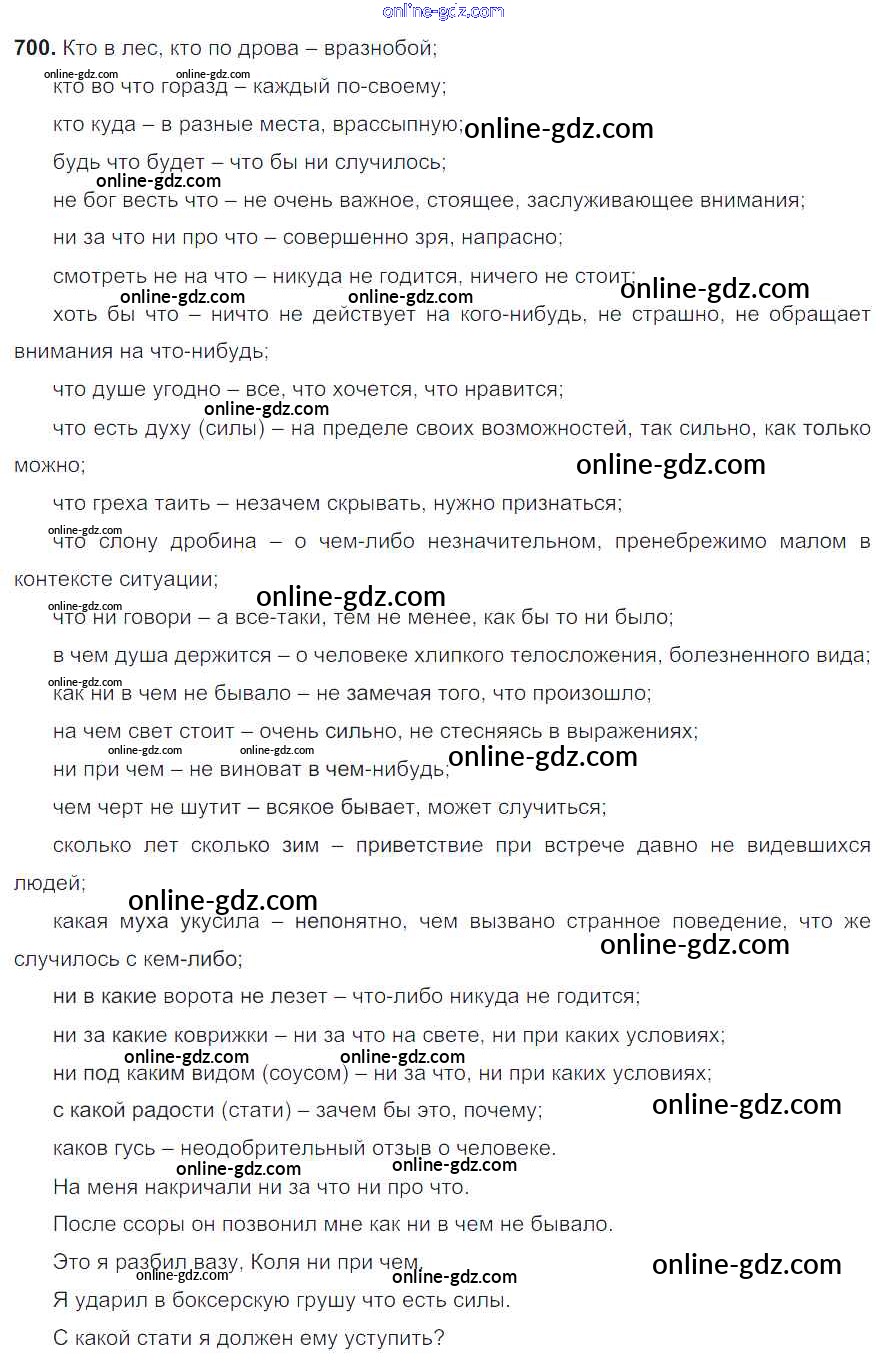 Готовые домашние задания по Русскому языку за 6 класс Учебник Разумовская, Львова Вертикаль 2016 - Упражнения 700