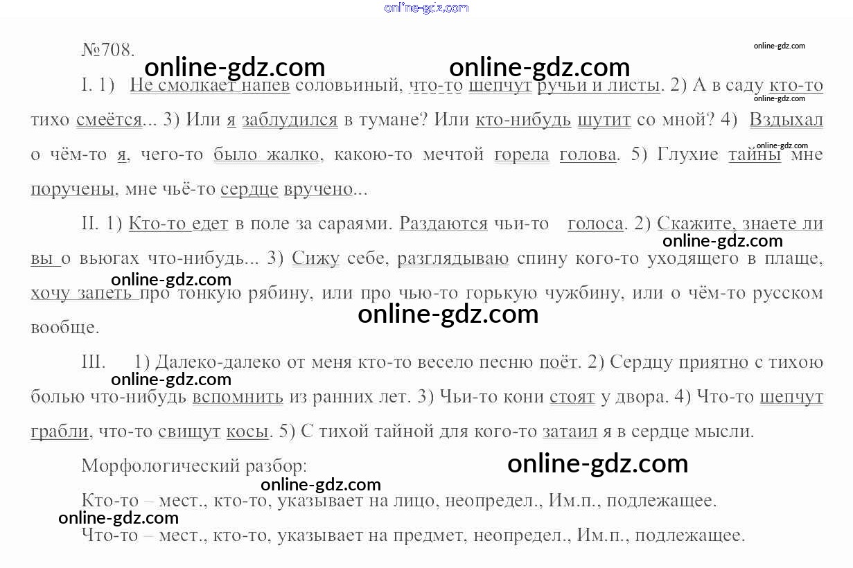 Готовые домашние задания по Русскому языку за 6 класс Учебник Разумовская, Львова Вертикаль 2016 - Упражнения 708