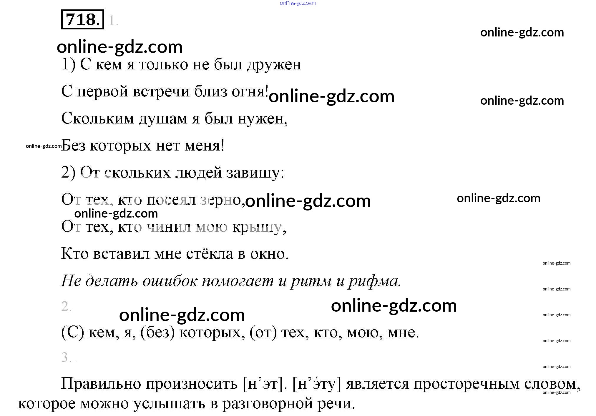Готовые домашние задания по Русскому языку за 6 класс Учебник Разумовская, Львова Вертикаль 2016 - Упражнения 718