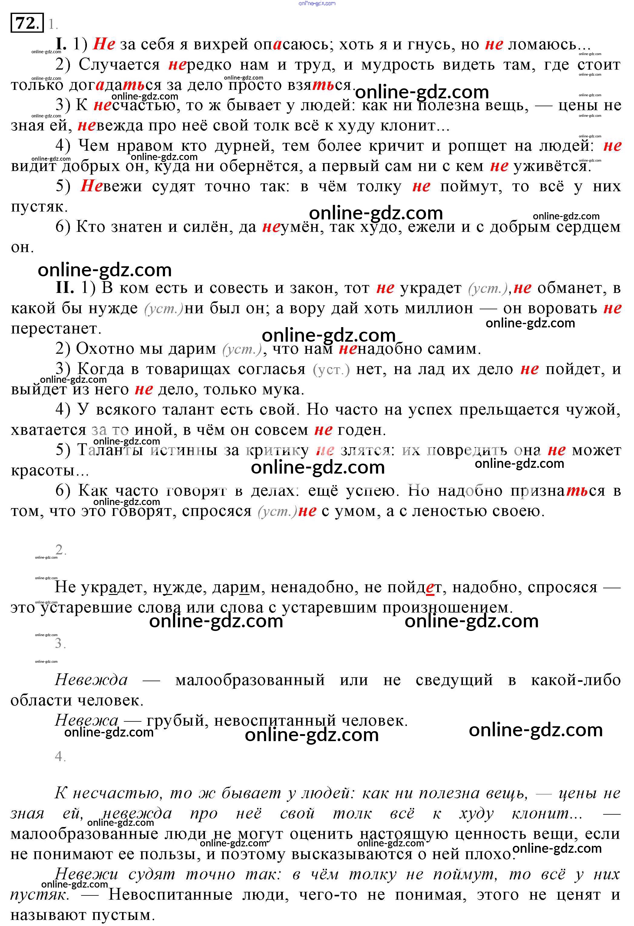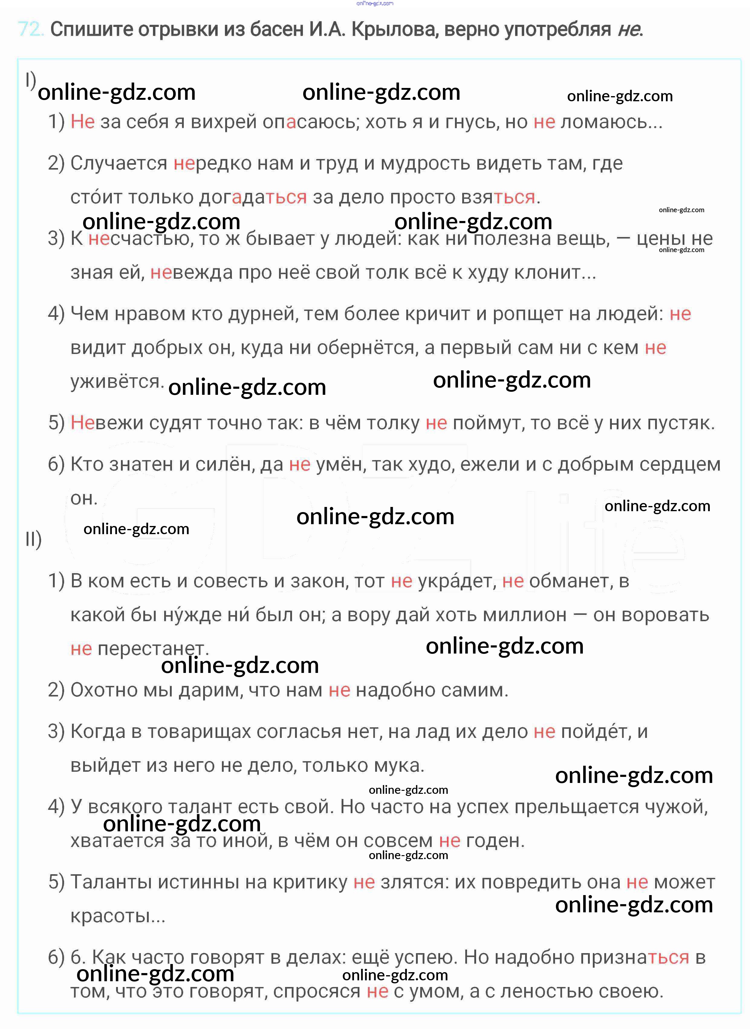 Готовые домашние задания по Русскому языку за 6 класс Учебник Разумовская, Львова Вертикаль 2016 - Упражнения 72