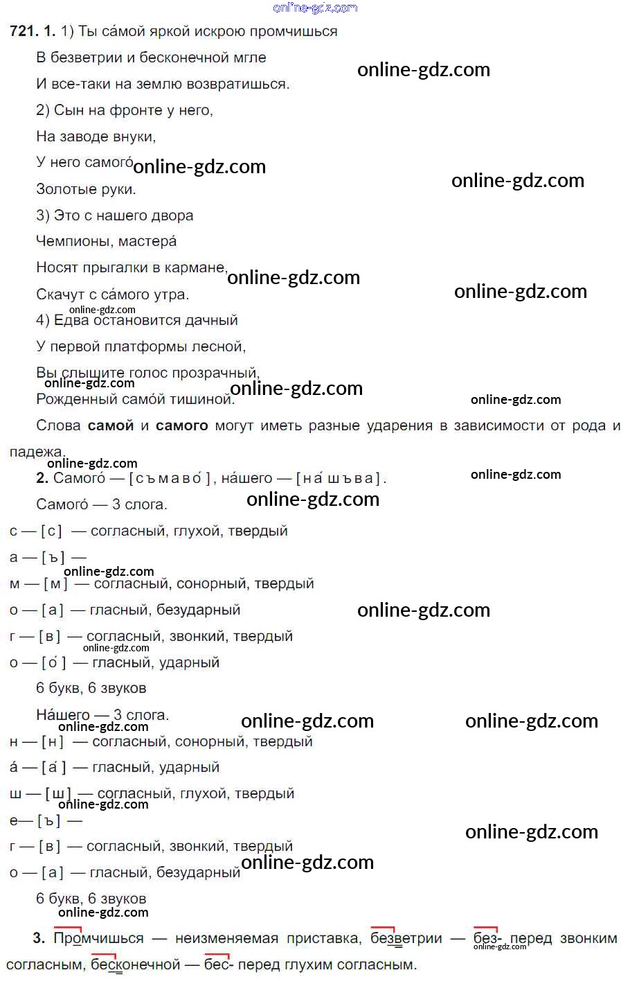 Готовые домашние задания по Русскому языку за 6 класс Учебник Разумовская, Львова Вертикаль 2016 - Упражнения 721