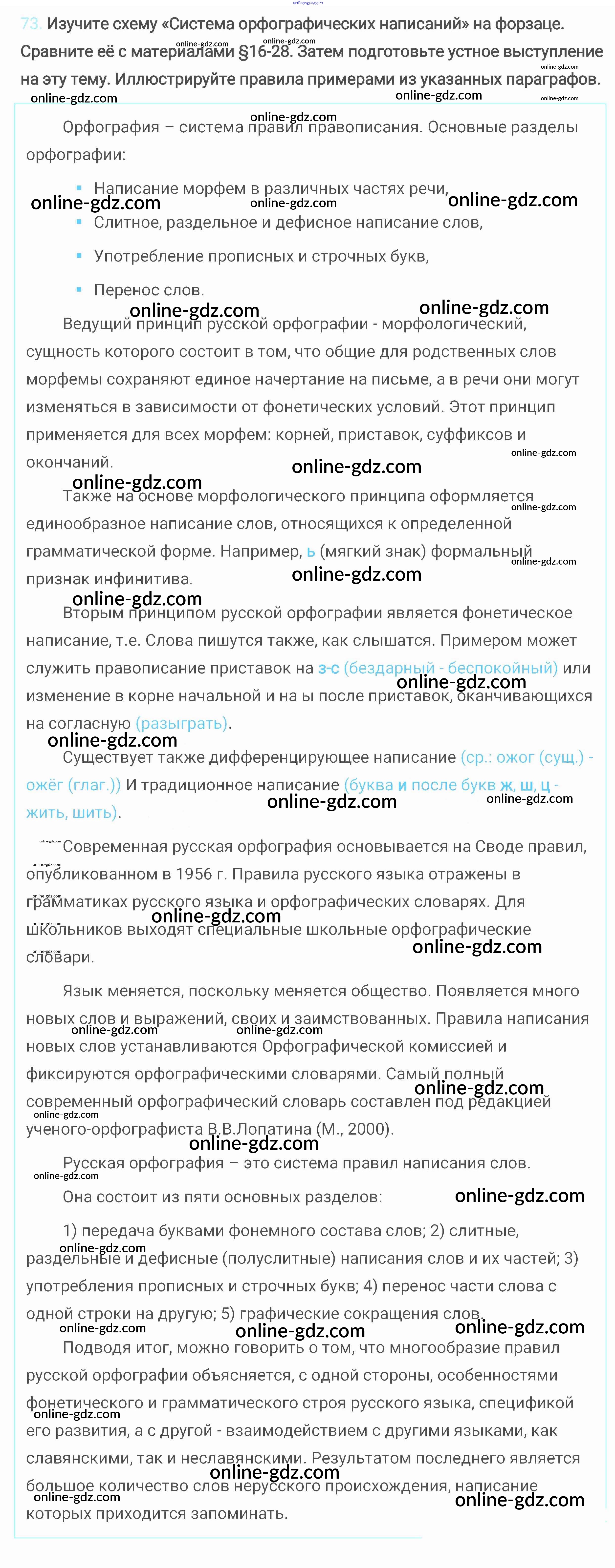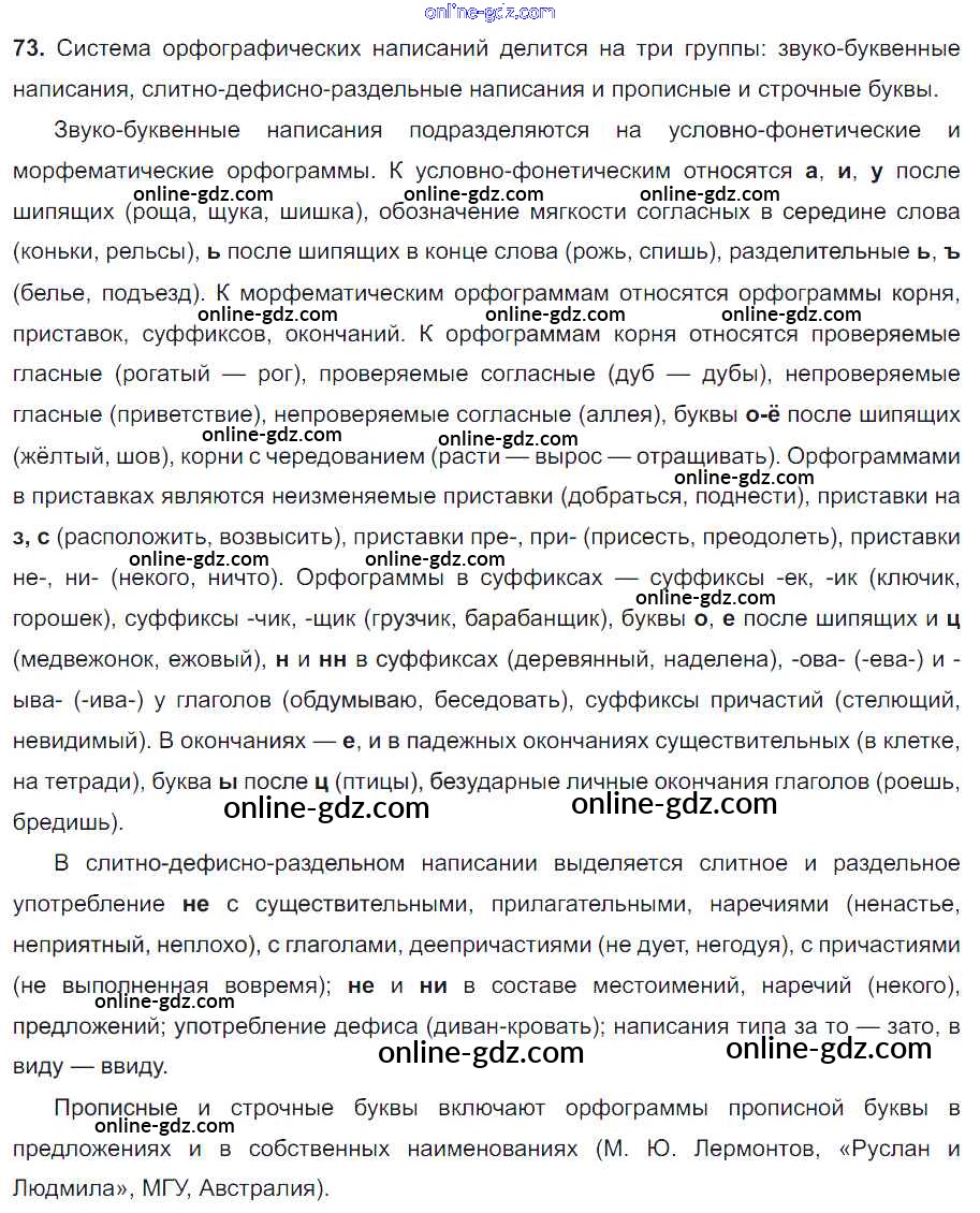Готовые домашние задания по Русскому языку за 6 класс Учебник Разумовская, Львова Вертикаль 2016 - Упражнения 73