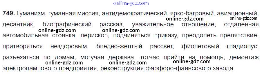 Готовые домашние задания по Русскому языку за 6 класс Учебник Разумовская, Львова Вертикаль 2016 - Упражнения 749