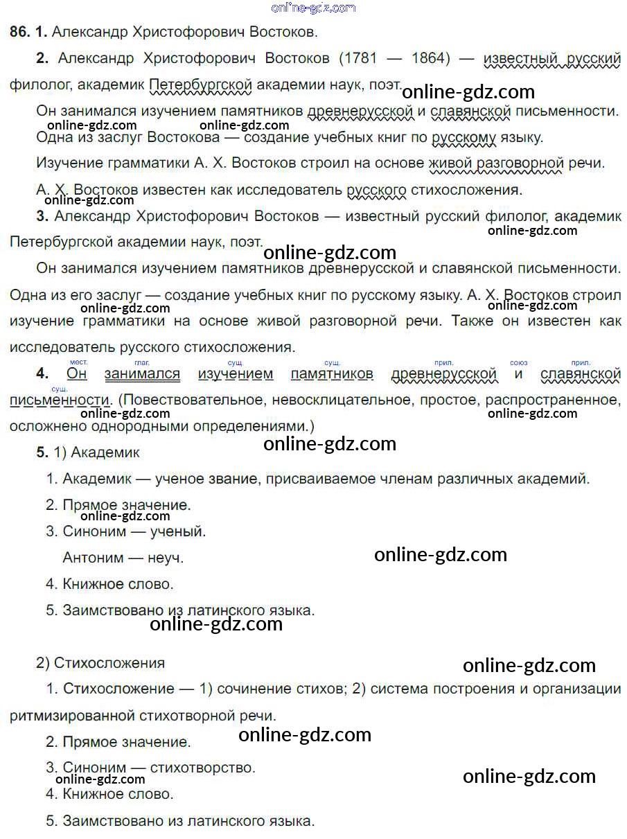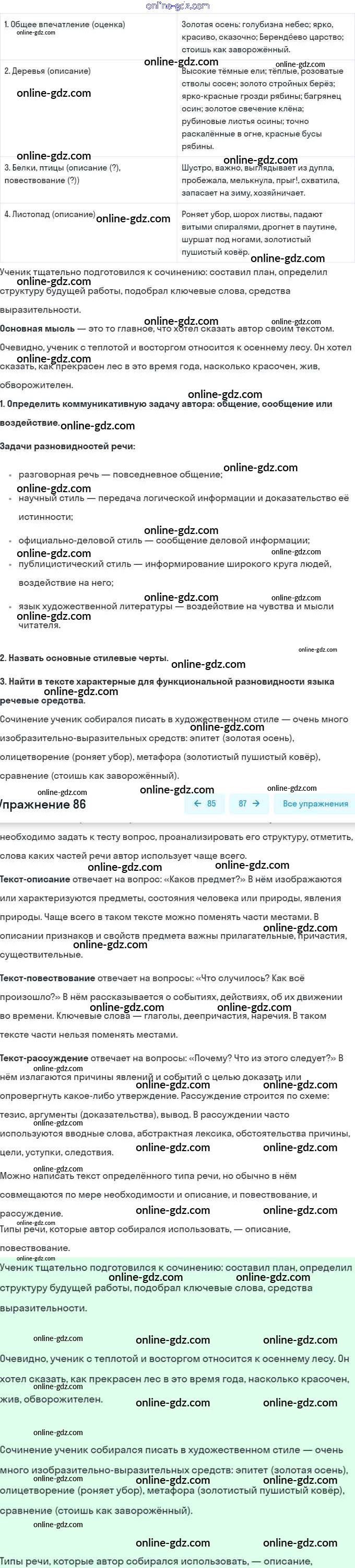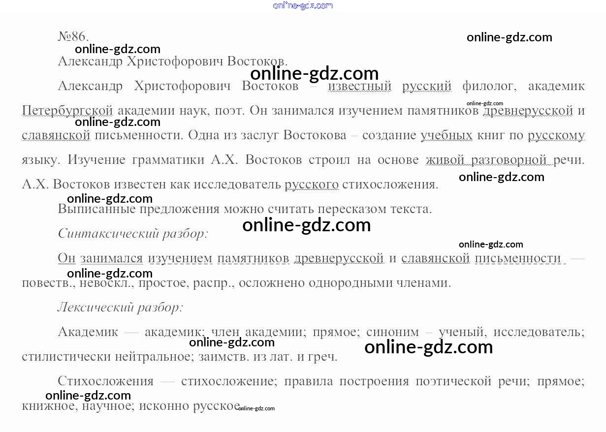 Готовые домашние задания по Русскому языку за 6 класс Учебник Разумовская, Львова Вертикаль 2016 - Упражнения 86