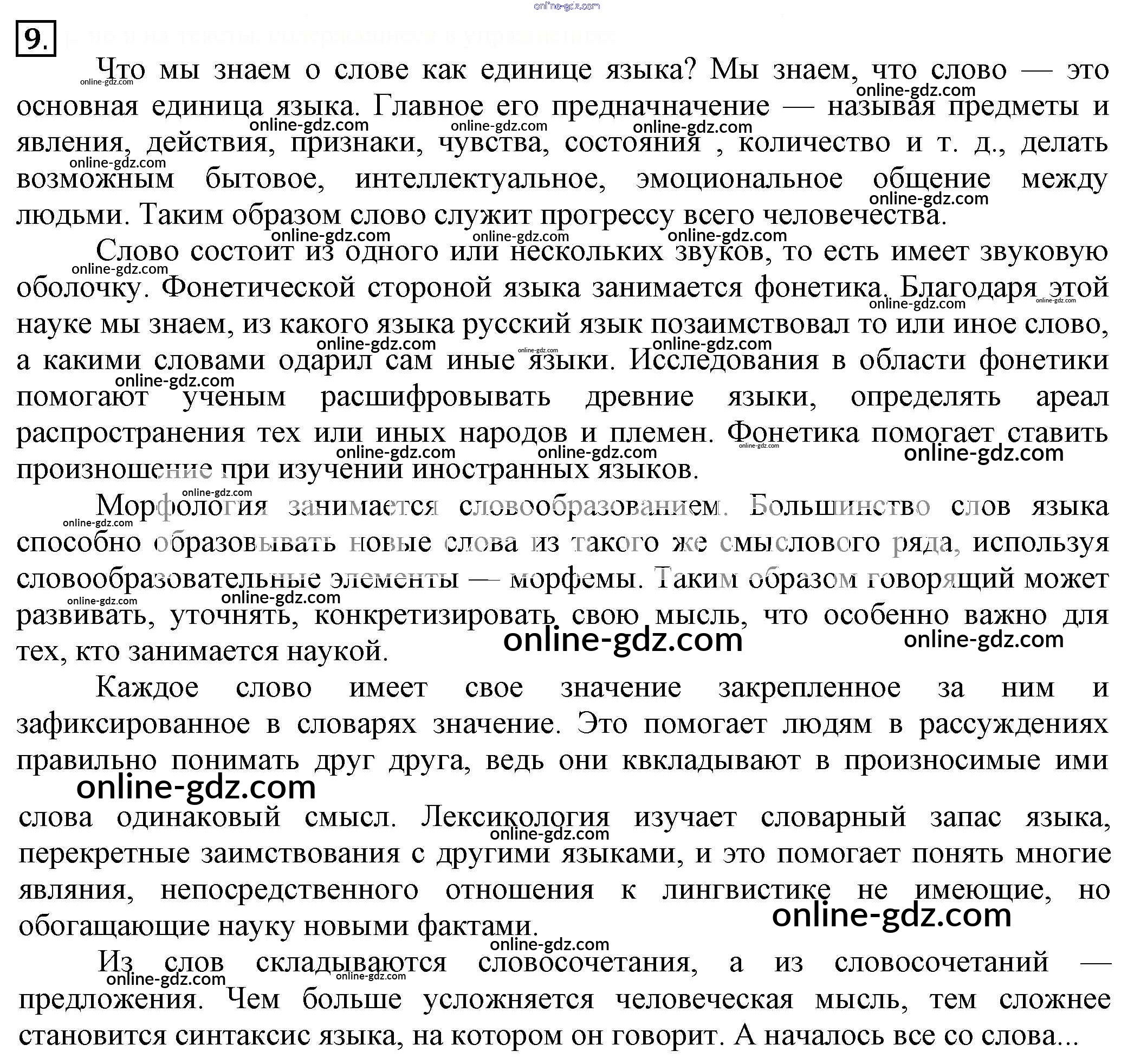 Готовые домашние задания по Русскому языку за 6 класс Учебник Разумовская, Львова Вертикаль 2016 - Упражнения 9