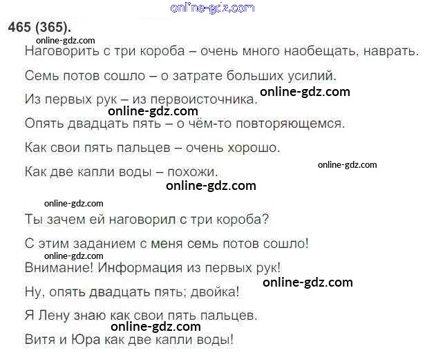 Готовые домашние задания по Русскому языку за 6 класс Учебник Рыбченкова, Александрова 2016 - Новое издание. Номера 465