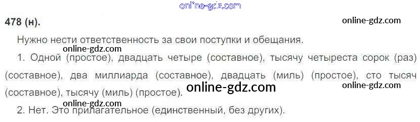 Готовые домашние задания по Русскому языку за 6 класс Учебник Рыбченкова, Александрова 2016 - Новое издание. Номера 478
