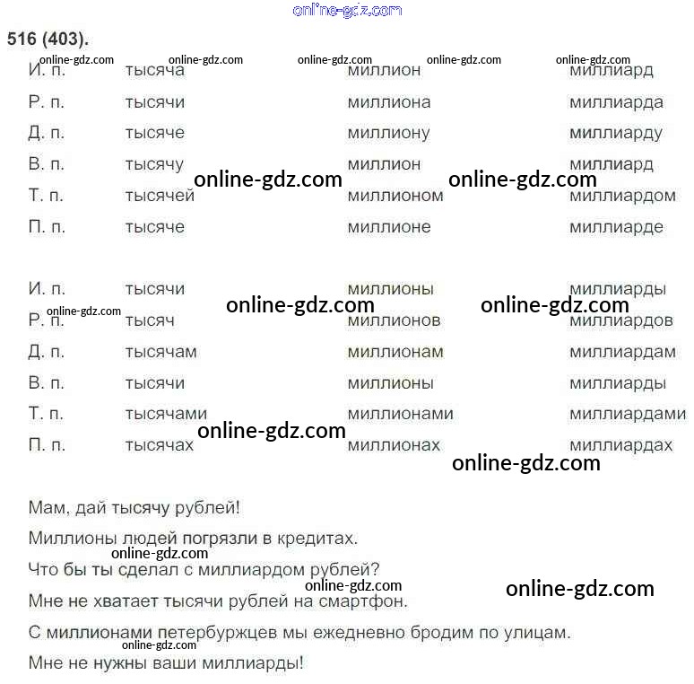 Готовые домашние задания по Русскому языку за 6 класс Учебник Рыбченкова, Александрова 2016 - Новое издание. Номера 516