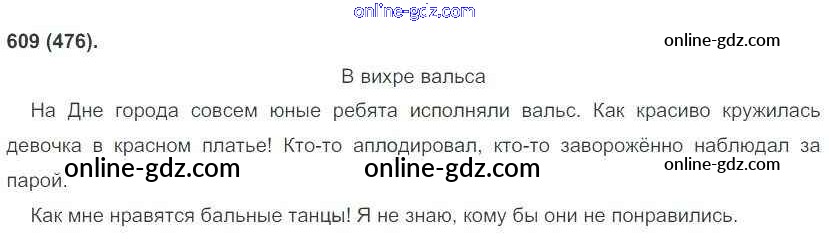 Готовые домашние задания по Русскому языку за 6 класс Учебник Рыбченкова, Александрова 2016 - Новое издание. Номера 609