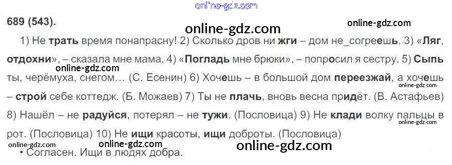 Готовые домашние задания по Русскому языку за 6 класс Учебник Рыбченкова, Александрова 2016 - Новое издание. Номера 689