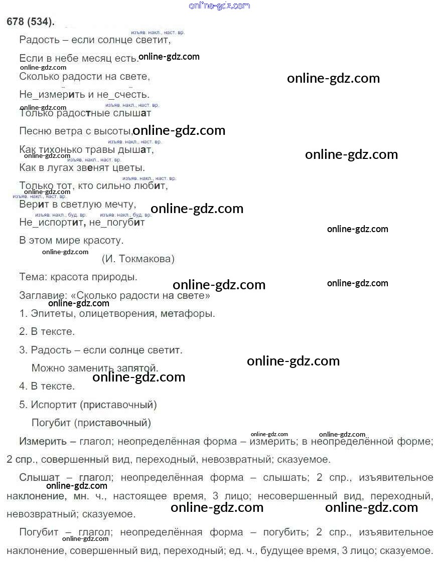 Готовые домашние задания по Русскому языку за 6 класс Учебник Рыбченкова, Александрова 2016 - Старое издание. Номера 534