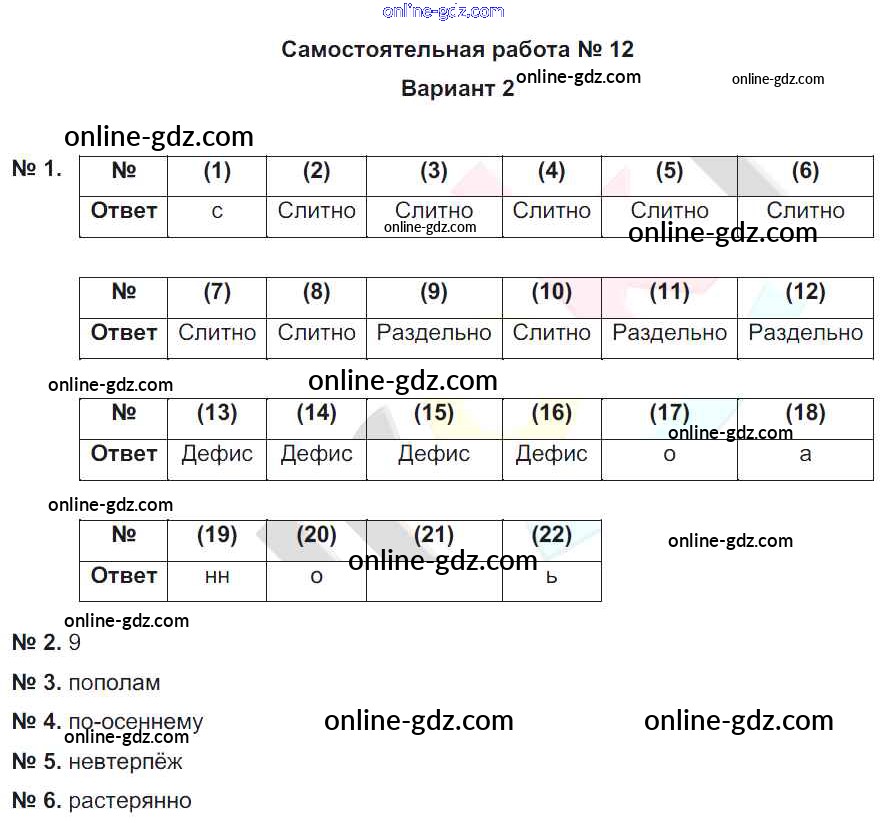 Готовые домашние задания по Русскому языку за 7 класс Рабочая тетрадь Александров, Александрова 2018 - СР-12. Варианты Самостоятельные работы 2