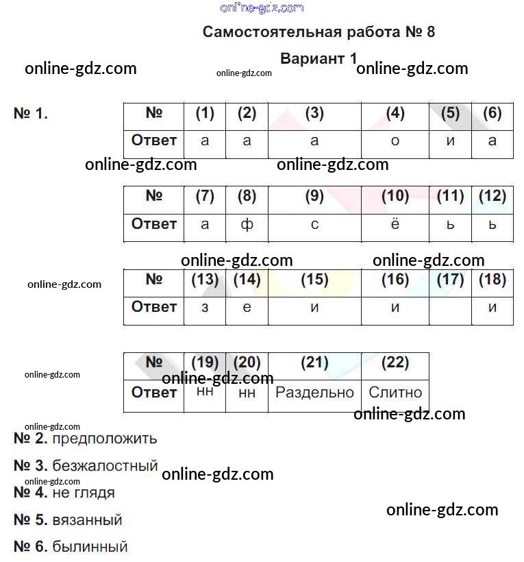 Готовые домашние задания по Русскому языку за 7 класс Рабочая тетрадь Александров, Александрова 2018 - СР-8. Варианты Самостоятельные работы 1