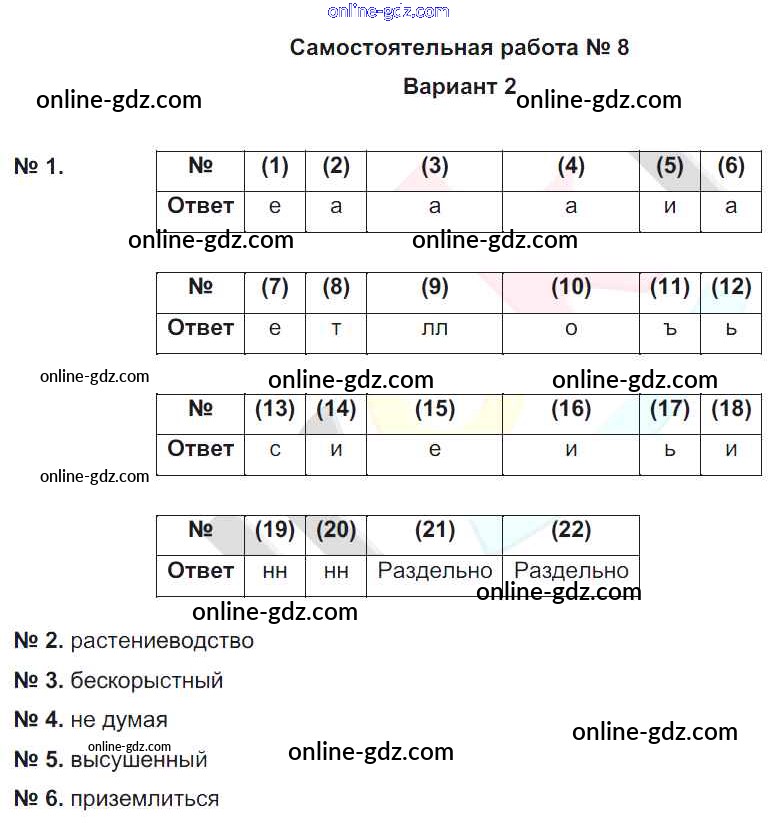 Готовые домашние задания по Русскому языку за 7 класс Рабочая тетрадь Александров, Александрова 2018 - СР-8. Варианты Самостоятельные работы 2
