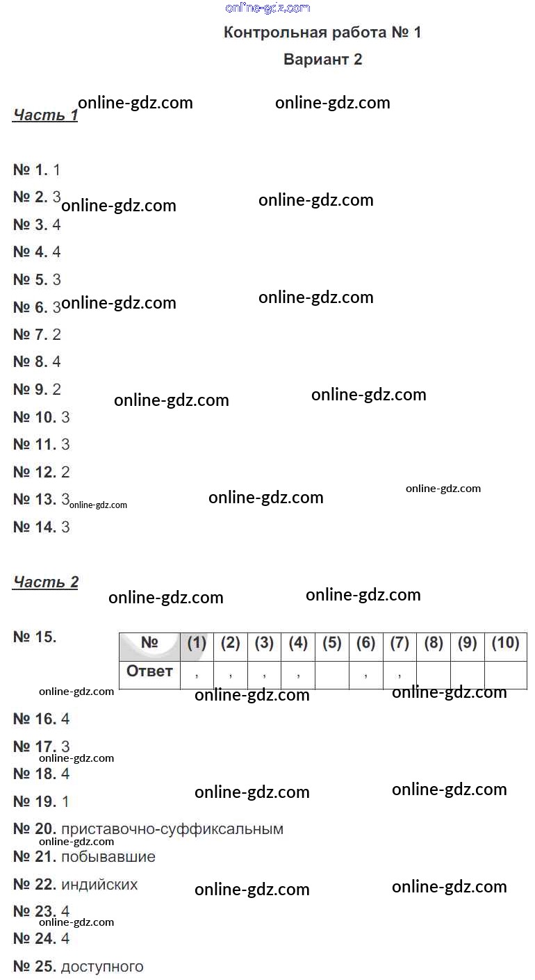 Готовые домашние задания по Русскому языку за 7 класс Рабочая тетрадь Александров, Александрова 2018 - КР-1. Варианты Контрольные работы 2