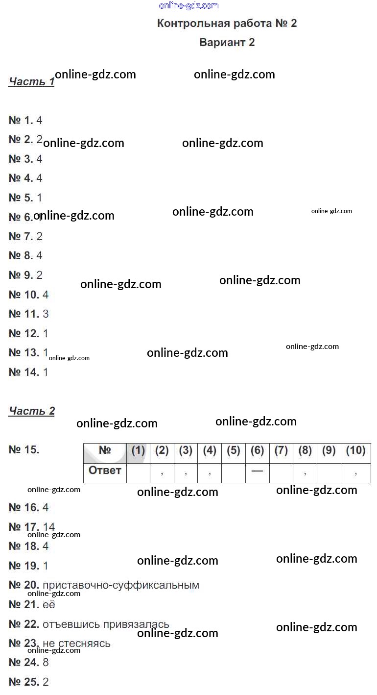 Готовые домашние задания по Русскому языку за 7 класс Рабочая тетрадь Александров, Александрова 2018 - КР-2. Варианты Контрольные работы 2