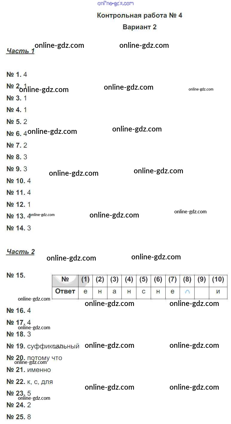 Готовые домашние задания по Русскому языку за 7 класс Рабочая тетрадь Александров, Александрова 2018 - КР-4. Варианты Контрольные работы 2