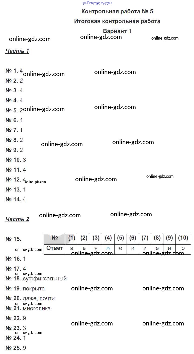 Готовые домашние задания по Русскому языку за 7 класс Рабочая тетрадь Александров, Александрова 2018 - КР-5. Варианты Контрольные работы 1
