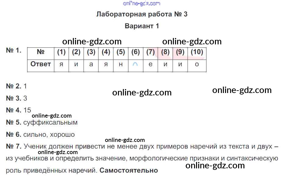 Готовые домашние задания по Русскому языку за 7 класс Рабочая тетрадь Александров, Александрова 2018 - Лабораторные работы 3. Варианты Лабораторные работы 1