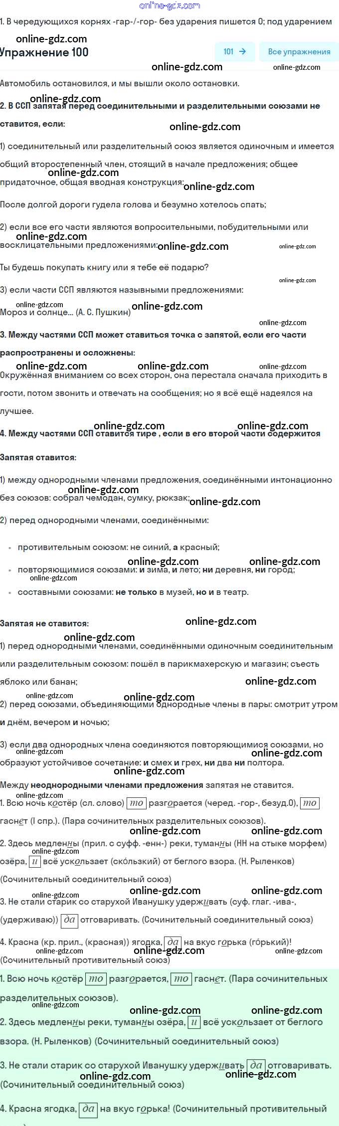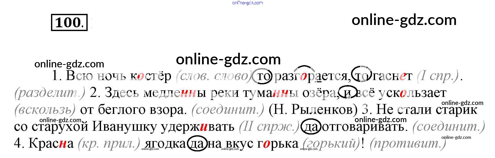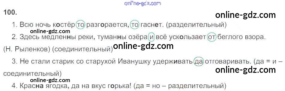 Готовые домашние задания по Русскому языку за 7 класс Рабочая тетрадь Ефремова, Баранова УМК 2017 - Упражнения 100