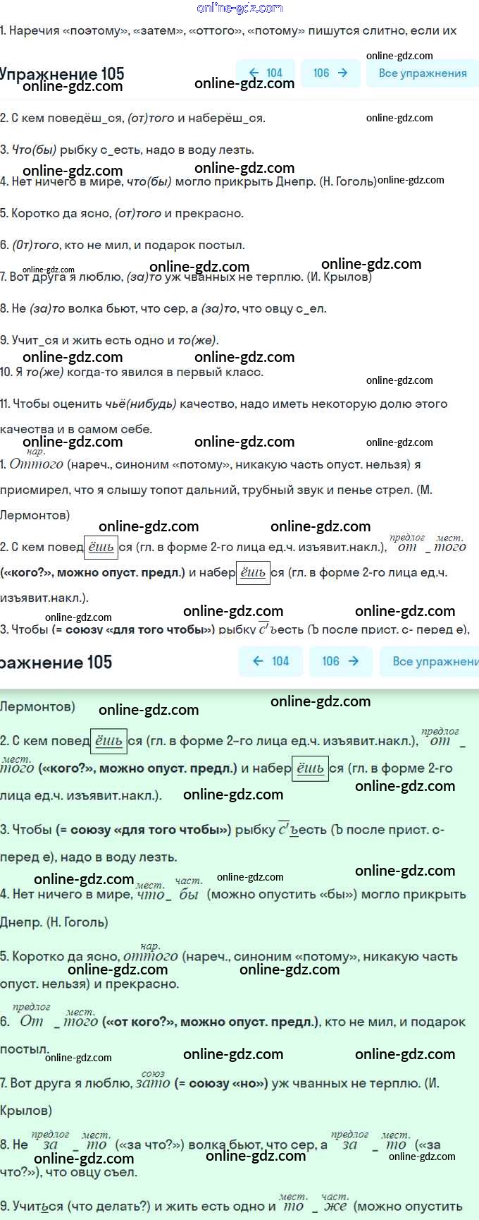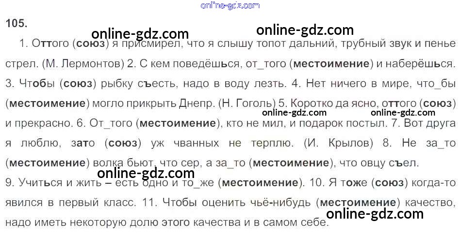 Готовые домашние задания по Русскому языку за 7 класс Рабочая тетрадь Ефремова, Баранова УМК 2017 - Упражнения 105